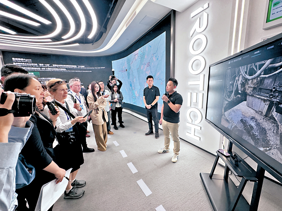 一台無人叉車在狹窄通道內自主完成轉向、避障、物料交接全流程,作業精度嚴格控制在正負5毫米以內,全程無需駕駛員、無需遙控器操作。緊鄰區域的焊接機器人隨即啟動,屏幕上實時呈現模擬焊接軌跡。這是日前香港文匯報記者在廣州琶洲樹根科技大廈工業智能科技館現場看到的場景。