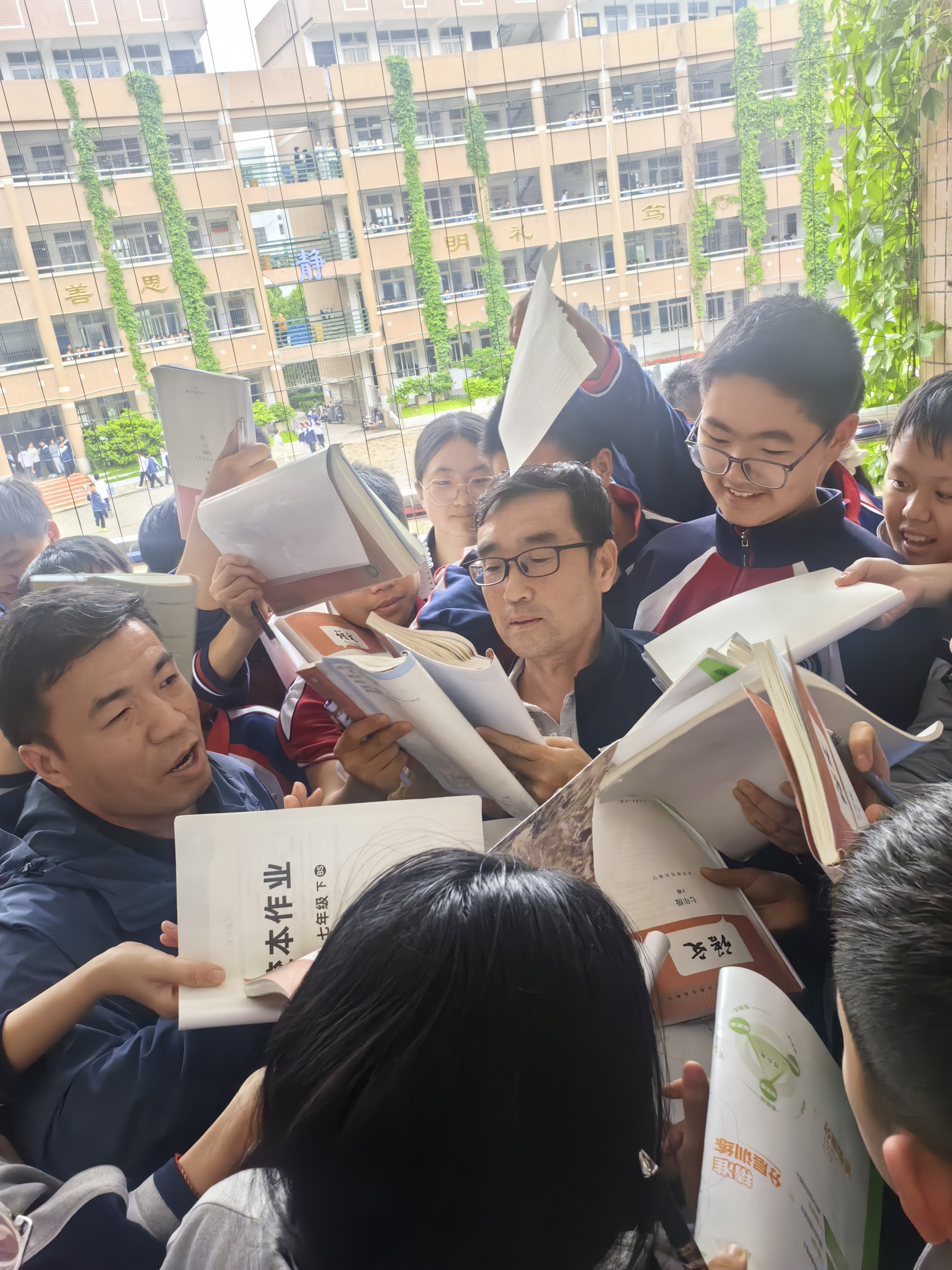 活動現場氣氛熱烈。講座結束後,大批學生手持圖書、筆記本排隊等候簽名,隊伍從會場延伸至走廊、樓梯。奚同發耐心為每一位學生簽名,全程歷時逾一小時。離校之際,仍有學生一路隨行交流讀書心得,場面溫馨感人。