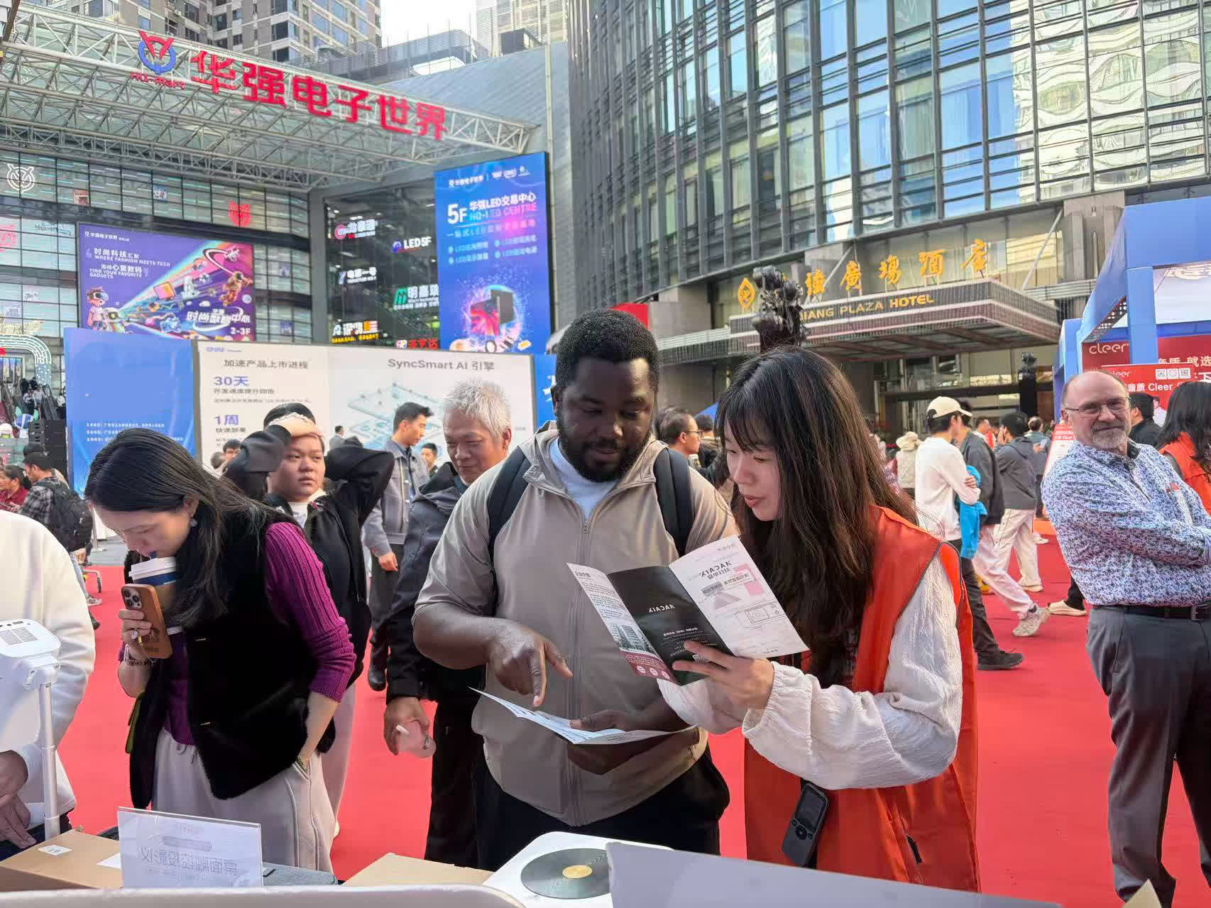 連日來,上萬名外籍客商在「橙馬甲」的護航下順利完成了採購。這一抹亮眼的橙色,架起了華強北與世界互聯互通的連心橋。而在「橙馬甲」的身後,還有着強大的陣地支撐:華強北依託黨群服務中心,精心打造了「國際友好之家」,配備了AI翻譯機和雙語便民設施,成為外籍人士歇腳交流的「溫馨港灣」;街道便民中心增設了「APEC商務旅行卡諮詢服務專窗」,則為涉外商務提供了高效服務。