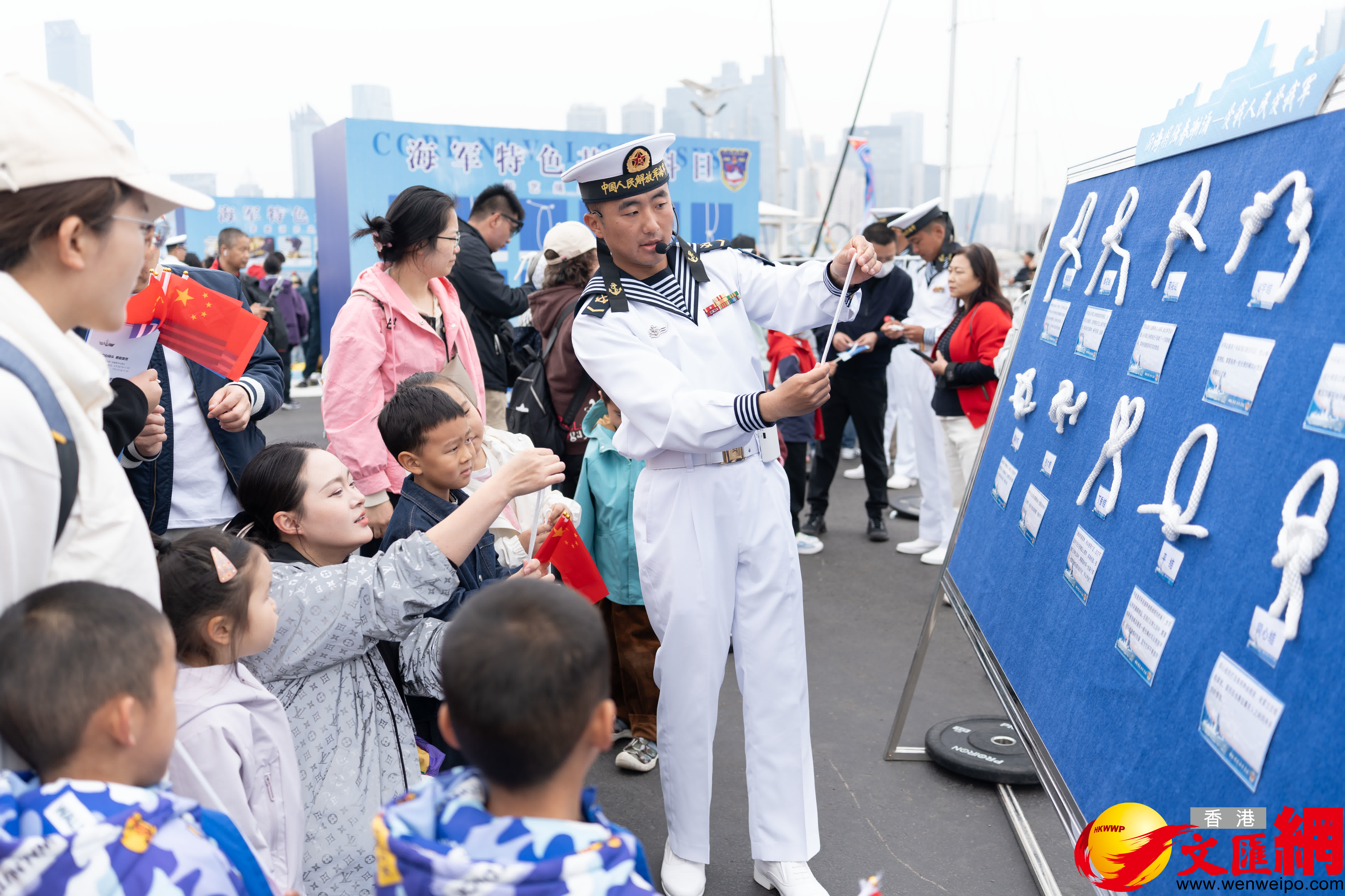 為讓參觀者近距離感受海軍官兵的日常訓練與實戰技能,現場專門開設國際信號旗語、自攜式潛水裝具穿戴、消防戰鬥服穿戴、繩結技巧等多個科目展示體驗板塊,讓市民親身體驗軍營生活,零距離觸摸深藍力量,以最真誠的姿態迎接每一位參訪者。