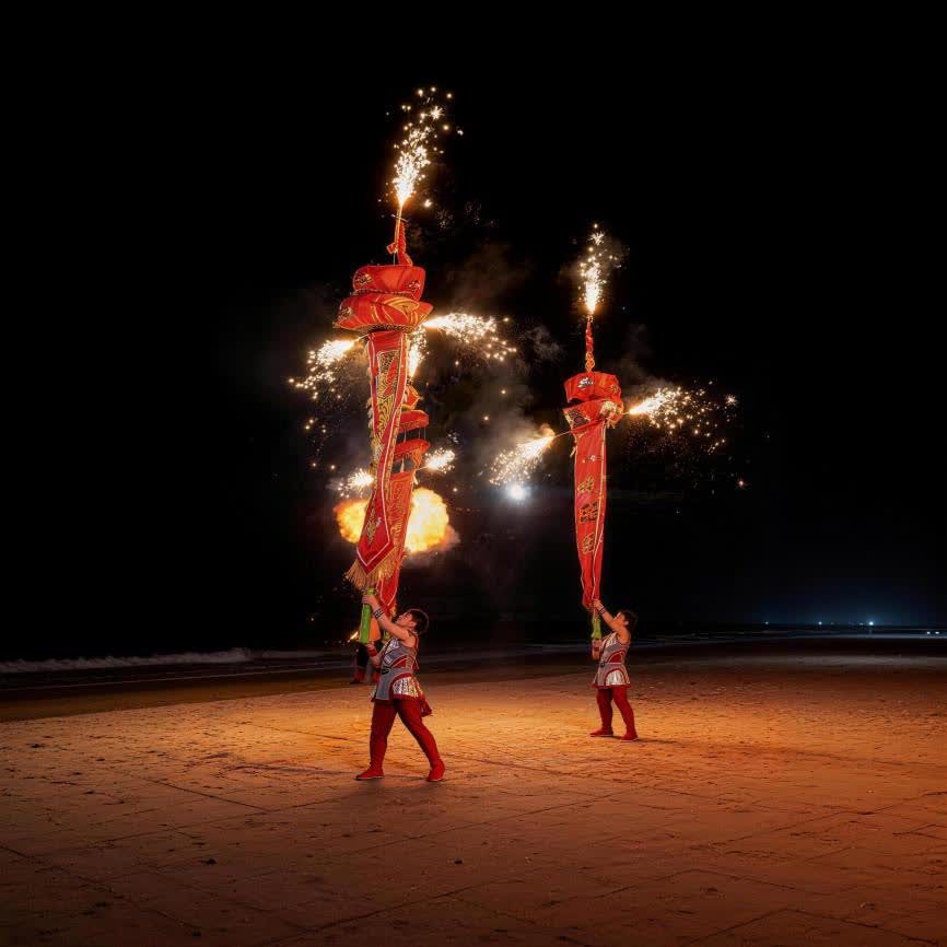 小梅沙海濱樂園重磅推出赤馬烈焰狂歡紀,在深圳海邊首演非遺火焰技藝與馬術融合大秀。火虎、火扇、馬上火壺、火中幡輪番上演,烈焰騰空與馬術特技交織,呈現震撼視聽盛宴。同期啟幕湘味十足紅五月·首屆冠軍味道市集,匯聚湖南特色美食、非遺文創,讓遊客在沙灘之上一站式感受湖湘風情。