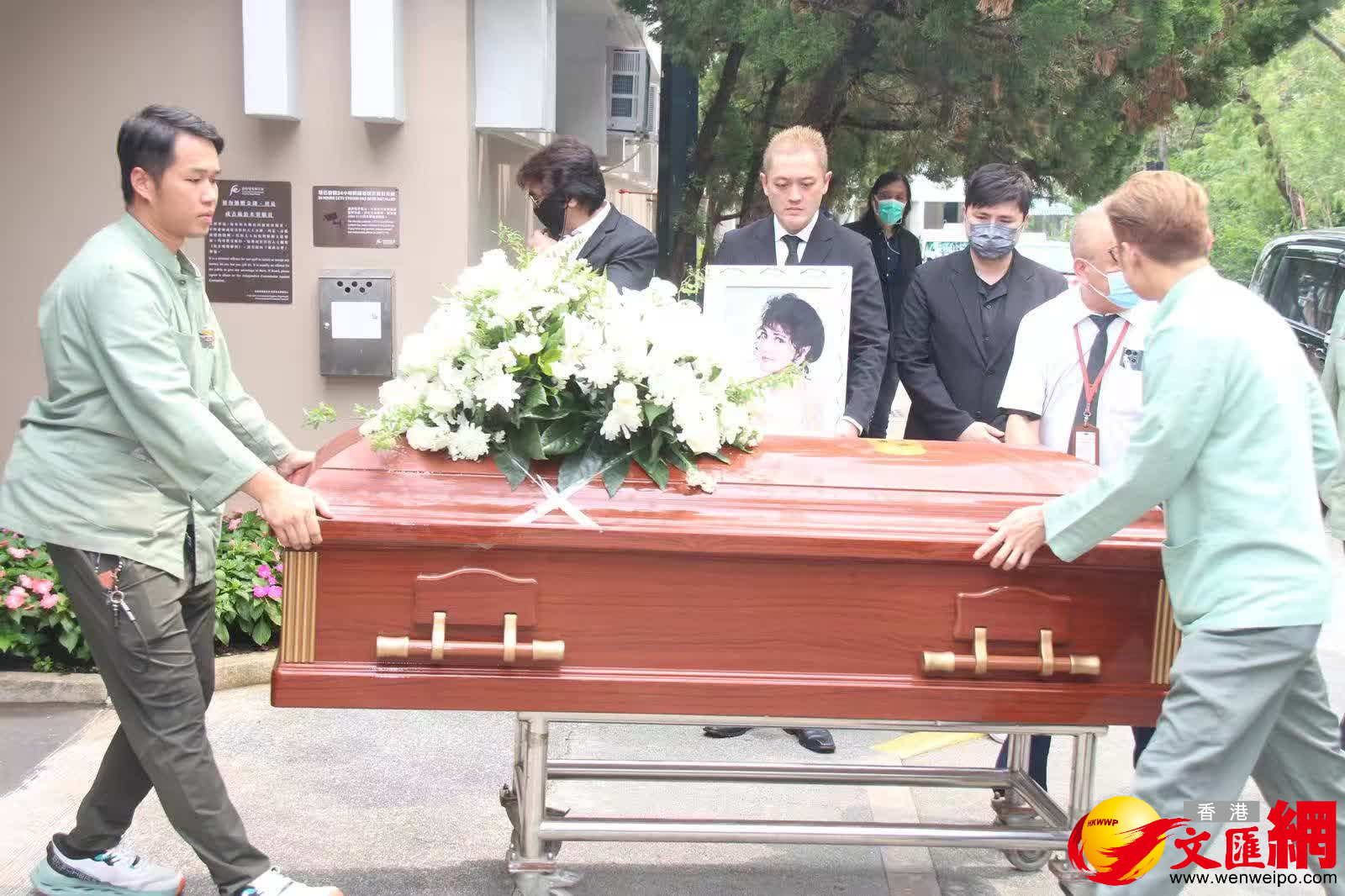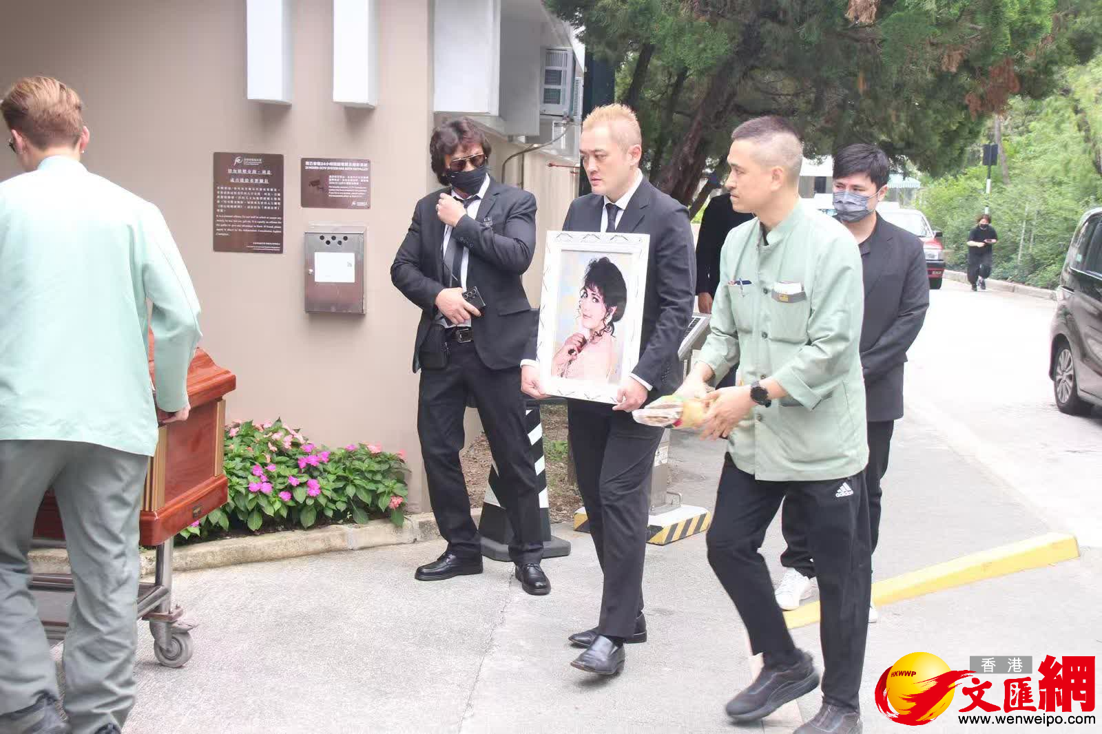 香港文匯報訊(攝影、記者 達里)上月因病離世的施明今日出殯,大仔李泳漢、前夫李家鼎(鼎爺)與細仔李泳豪均一早到靈堂準備。大殮儀式於10時15分完成,靈柩隨即移送到富山火葬場,由李泳漢捧着母親施明的遺照,李泳豪則在旁,兩兄弟一起陪伴媽媽走最後一程。