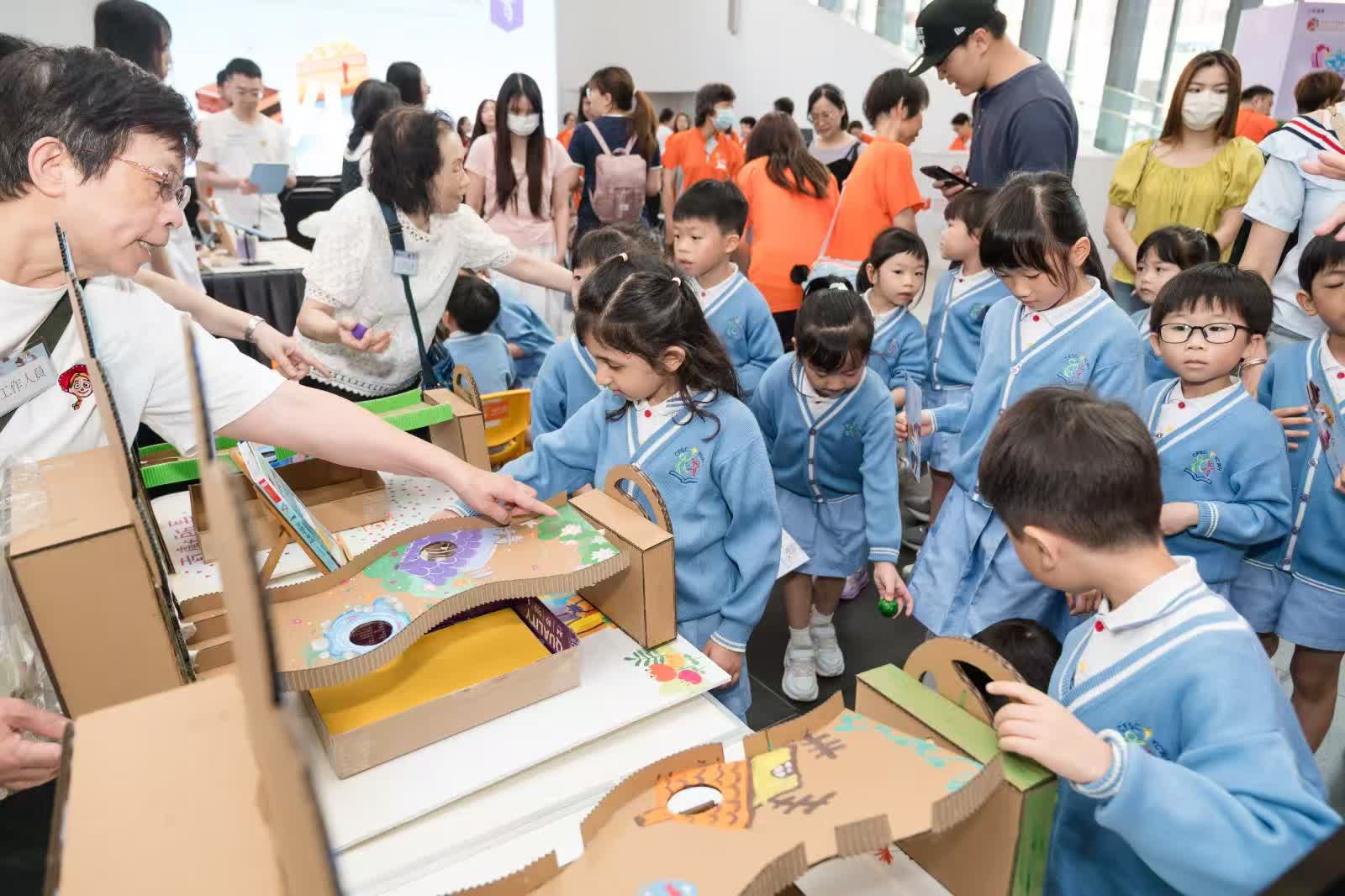 今日舉行的「童趣共讀嘉年華」,邀請了著名藝人和兒童繪本作家,與孩子分享閱讀故事的樂趣,現場亦設有互動工作坊和閱讀區,參加者可在閱讀童話書後透過繪畫分享故事內容,並將畫作以擴增實境技術轉化成動畫投射到螢幕牆。