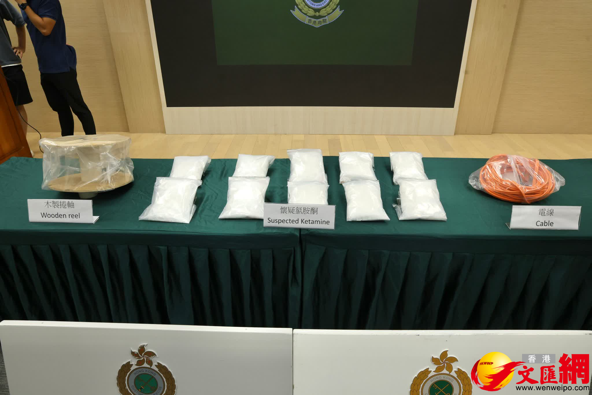 香港文匯報訊(記者 蕭景源)海關機場科空運貨物課人員,於昨日(22日)透過風險評估,在機場查驗一件由荷蘭抵港、報稱載有電線的空運包裹。關員在檢查時,發現包裹的X光影像有可疑,遂對包裹作詳細檢查,結果發現包裹內的電線捲筒和電線之間,藏有10包共重10公斤、總值約390萬元的懷疑氯胺酮(K仔)。