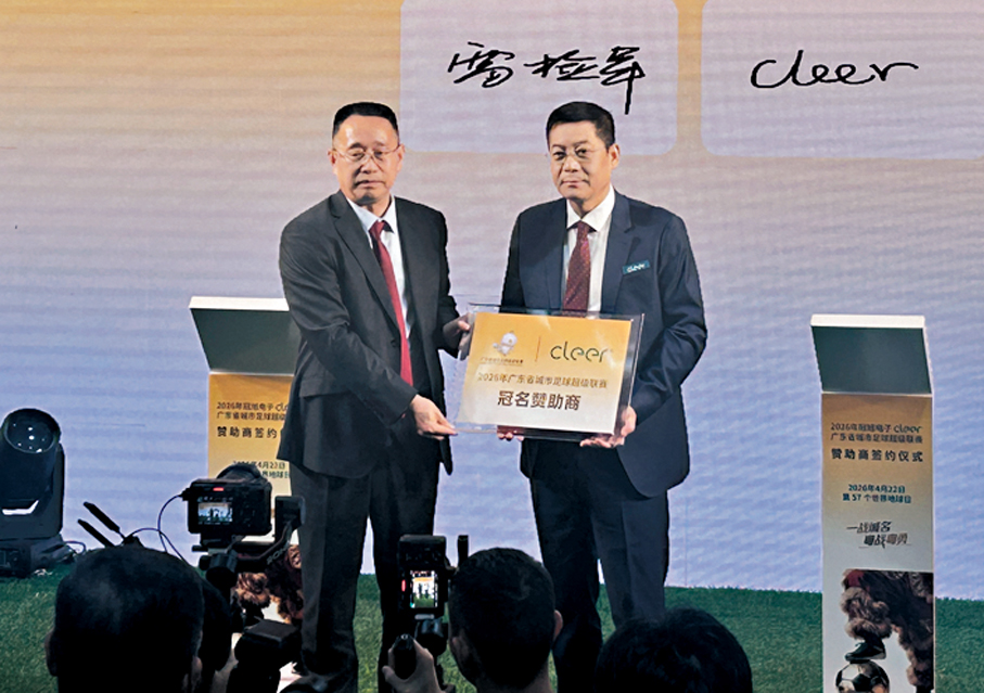 香港文匯報訊(記者 敖敏輝 廣州報道)粵超賽前籌備期間,吸引了大量社會企業的關注,今年粵超匯聚了不少行業龍頭及本土優質知名企業,合作陣容強大。是次簽約儀式上,深圳冠旭電子股份有限公司(CLEER)作為聯賽總冠名贊助商(第一層級)領銜助陣;淘寶閃購、廣汽昊鉑埃安作為官方戰略合作夥伴(第二層級)深度賦能;吾器酷阿仕利塔、熹樂谷公司成為官方贊助商(第三層級);正佳廣場、康師傅、健力寶、王老吉則以官方供應商(第四層級)的身份提供支持,參與企業涵蓋科技、電商、汽車、文旅、快消等多個領域,與粵超「全民足球」理念契合。
