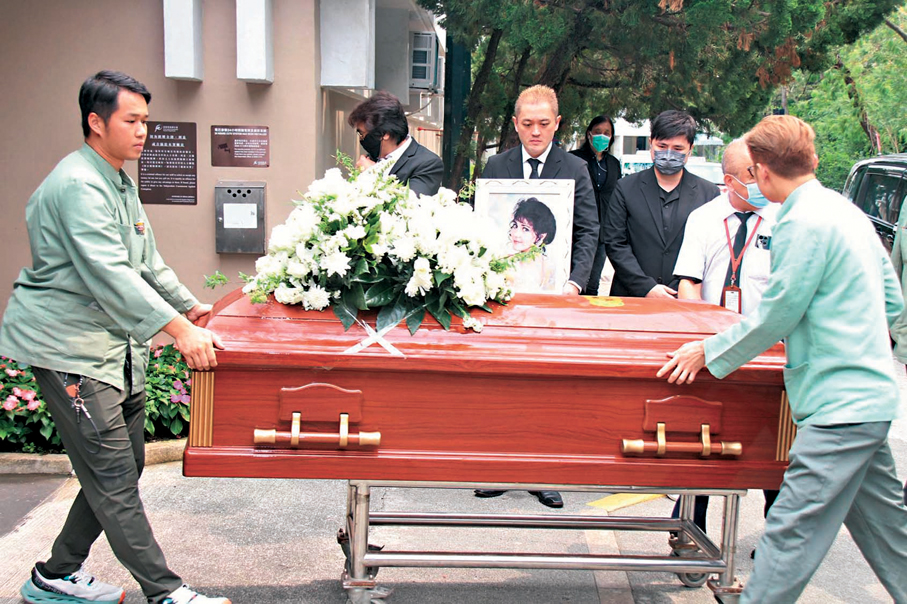香港文匯報訊(記者 達里)上月因病離世的施明昨日出殯,大仔李泳漢、前夫李家鼎(鼎爺)與細仔李泳豪均一早到靈堂準備。大殮儀式於10時15分完成,靈柩隨即移送到富山火葬場,李泳漢捧着母親遺照,李泳豪在旁相伴,兩兄弟陪媽媽走最後一程。