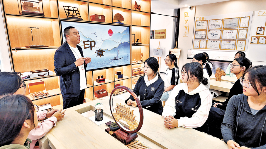 始於清康熙三十一年,歷經13代匠人薪火相傳,河北省級非物質文化遺產井陘木雕曾是服務宮廷的精湛技藝,如今成為承載中華傳統造物智慧的文化符號。作為北方木雕流派的重要代表,它既兼具北方工藝的雄渾大氣,又吸納南方雕刻的細膩靈動,沉澱下「一刀刻一下,一下鑿一刀」的百年藝訣。90後傳承人許紅陽,以20餘年光陰執刀不輟,將薄浮雕精度從傳統2至5毫米精進至2至4毫米,用「蟬翼作畫」的細膩賦予古藝新生。他以免費博物館、300餘種文創、「非遺進校園」等創新實踐,讓這門300年老手藝走出「深閨」,讓中華優秀傳統文化在一刀一刻間,流淌出新的生命力。