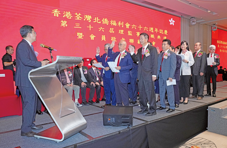 區家盛表示,香港荃灣北僑福利會66年來始終秉持「聯誼、服務、團結、互助」精神,積極參與社會福利事務,特別是在長者服務、支持關愛隊及協助宣傳立法會選舉等方面貢獻良多,是民政事務處推動完善地區治理的好夥伴。他祝願新一屆理監事群策群力,續創佳績,為促進社會和諧再立新功。典禮上,在區家盛監誓下,全體理監事宣誓就職,並頒發理監事選任證書及聘任證書。大會同時向70歲以上及90歲以上會員代表致送利是,並向該會永遠會長王聖根頒發「超過50年服務獎」,場面溫馨。