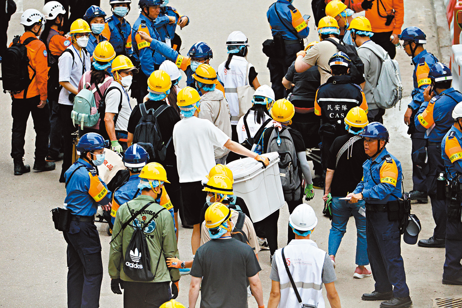 香港文匯報訊(記者 張茗)大埔宏福苑七座受影響大廈的居民分批返回單位執拾物品,昨日進入第二輪,開放宏昌閣及宏仁閣單位。特區政府政務司副司長卓永興、保安局局長鄧炳強及社會福利署署長杜永恒等視察後交代最新安排。