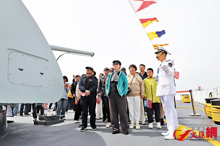 (香港文匯報記者 宋偉 大連報道)23日,北部戰區海軍某部牽頭駐地海軍部隊在遼寧大連某軍港舉辦艦艇開放活動。海軍054A型導彈護衛艦鄂爾多斯艦(舷號580)、第一艘遠洋航海訓練艦鄭和艦(舷號81)、081型掃雷艦青州艦(舷號730)懸掛滿旗,以海軍最隆重的禮儀迎接兩萬餘名民眾登艦參觀。來自內蒙古的王先生攜家人專程驅車千餘公里趕來。他憑欄遠眺,豪情滿懷地說:「親眼看到咱們國家這麼先進的軍艦,心裏滿是自豪。有這些重器守護,老百姓的日子過得硬氣、踏實!」