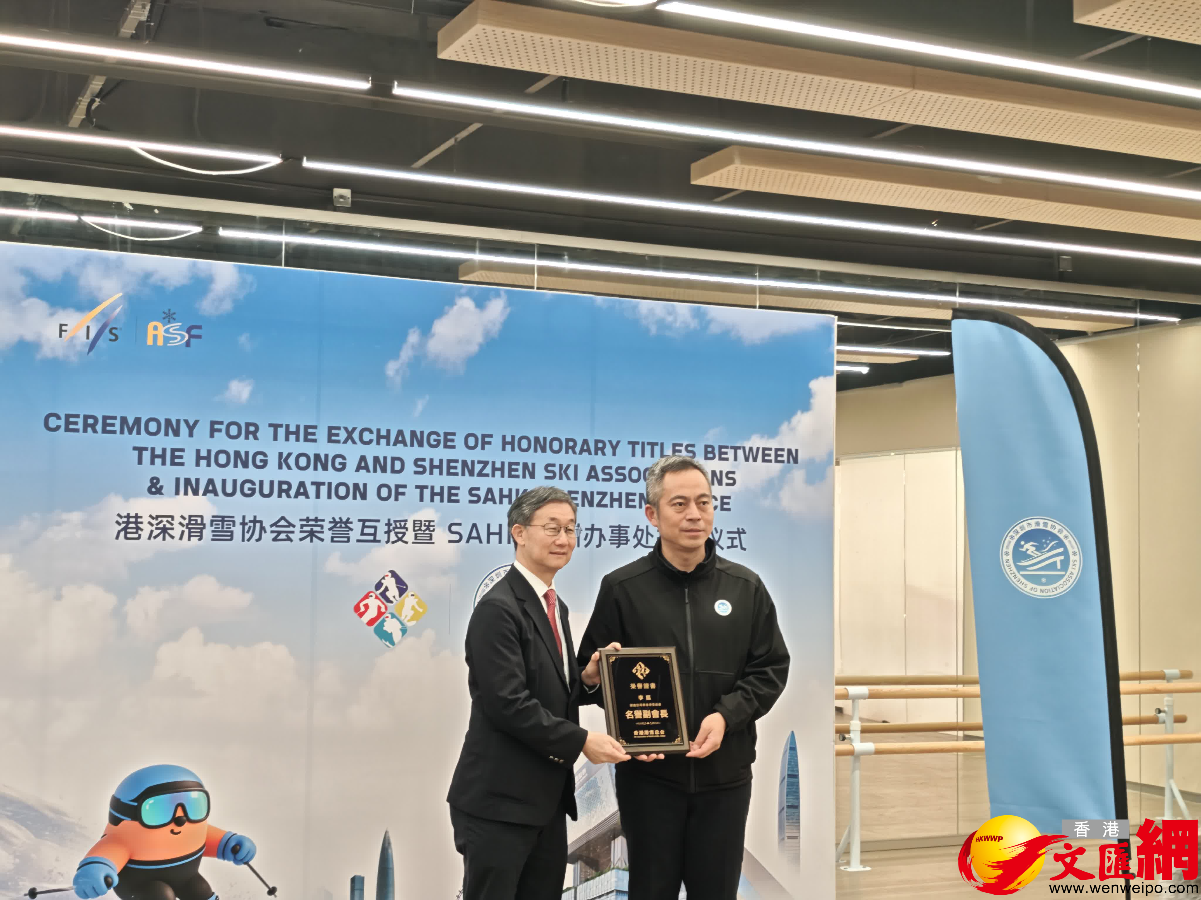 開幕式後,與會嘉賓共同見證了中國香港滑雪總會與深圳市滑雪協會互相授牌、SAHK深圳辦事處正式揭牌的重要時刻。這一舉措標誌着深港冰雪合作已從單純的賽事共辦,邁向資源共享、人才共育、標準共輸的機制性深度融合新階段,為粵港澳大灣區打造冰雪產業龍頭引領範式按下了「加速鍵」。