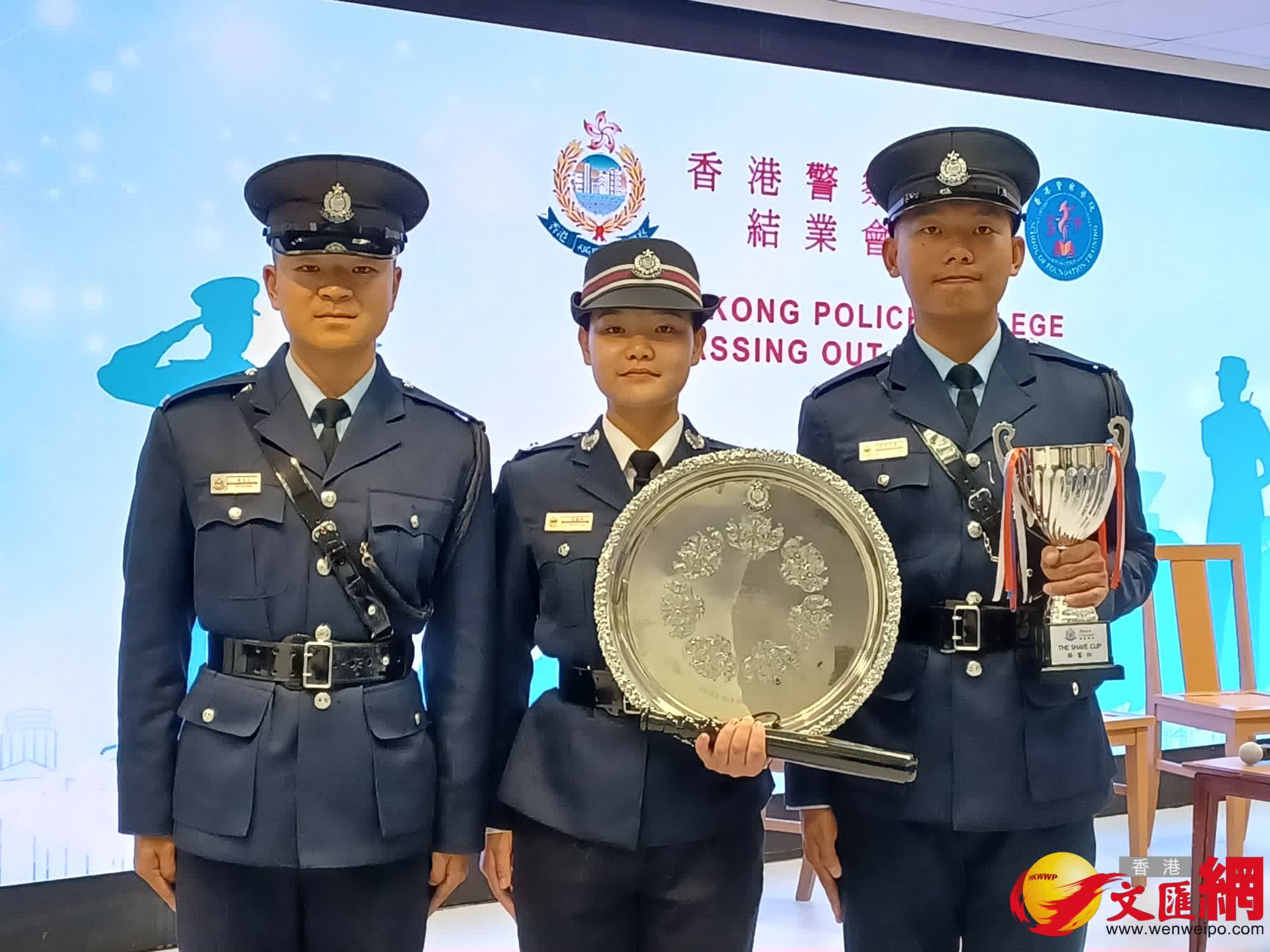 現年27歲女見習督察范婕妍(Kody),獲頒施禮榮盾及榮譽警棍。她在香港大學土木工程系畢業,因喜歡冒險、挑戰未知及熱愛馬匹,遠赴英國做賽馬策騎員。Kody說,警務工作充滿變數與未知,與賽馬競技同樣需要具備冷靜及敏銳的觀察和分析力,加上在3年策騎生涯中,曾因受傷萌生放棄念頭,但最終選擇堅持,更鍛煉出堅韌及強大心理素質,為她投考警隊奠定重要基礎。