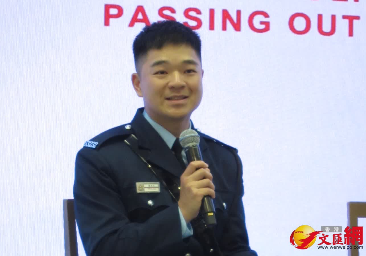 葉浩文表示,他曾擔任中學木球教練,教學期間體會到真正的成功,並非取決於個人成就高低,而是能否讓身邊的人共同進步。所以他在學院受訓期間自薦擔任班長,希望憑藉多年在木球場上累積的經驗,帶領同學共同面對挑戰;「展望未來,我期望以警員身份,在巡邏期間預防罪案發生,以至拘捕疑犯、打擊罪行,為社會作出貢獻。警務工作每一日均面對不同挑戰,對我亦是一種自我突破的機會。」