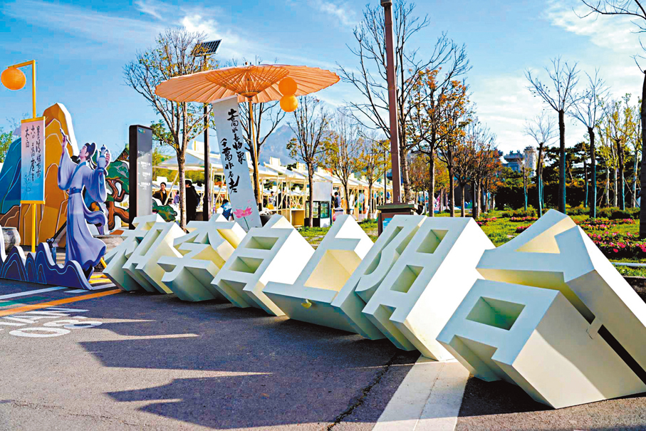 文旅節盛景之下,非遺市集沿街綿延,手工編織、天壇硯雕等本土技藝輪番亮相,匠心流轉;一旁的創意攤位上,「胡辣湯味香蕉牛奶」等另類飲品新奇吸睛,古意與新潮在此碰撞交融,讓千年老街更添鮮活張力。身着漢服的遊人步履翩躚,穿行於廊簷光影之間;扮作李白、愚公等經典形象的演藝人員緩步其間,與遊客談笑互動、合影留念。盛唐詩意與愚公精神相映成趣,一步一景皆成畫卷。