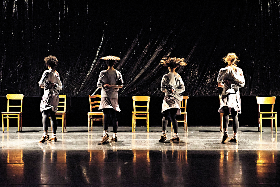 在香港藝術節演出《羅薩絲之舞》的四位舞者,分別來自法國、瑞士和日本。她們的裝束也一致地像一般習舞者,沒有束起的直髮、寬鬆跌膊衫、小短裙和leggings。與之共舞的就是一張張椅子。《羅薩絲之舞》連串看似機械的動作,營造出獨有節奏,音樂上亦從簡單的滴答聲作推進,讓舞者在不同章節中,從舞台最深處,走到台前C位。當中重複無數遍的,看似不花巧不夢幻,把不被認為是舞蹈表演的動作入舞,實則實踐着高強度的當代舞特質,高度生活化、強調速度、節奏感強烈。舞台上的美,恰恰與生活息息相關。這種似乎是相當形式化的舞蹈語言與節奏高度融合,整個演出充滿張力。