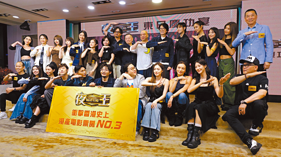香港文匯報訊(記者 梁靜儀)電影《夜王》上映以來票房屢創新高,截至4月23日晚上8時,票房已突破約1.12億港元。為慶祝佳績,前晚於尖沙咀舉行慶功宴,導演吳煒倫聯同黃子華、謝君豪、楊偲泳、何啟華、盧鎮業、李芯駖、譚旻萱、王丹妮等演員出席。吳煒倫在台上表示,《夜王》只差數十萬票房便可超越《九龍城寨之圍城》,躍升至香港華語票房榜第三位。黃子華則笑言導演是來「籌旗」,並送上珍藏多年的打火機為導演打氣。