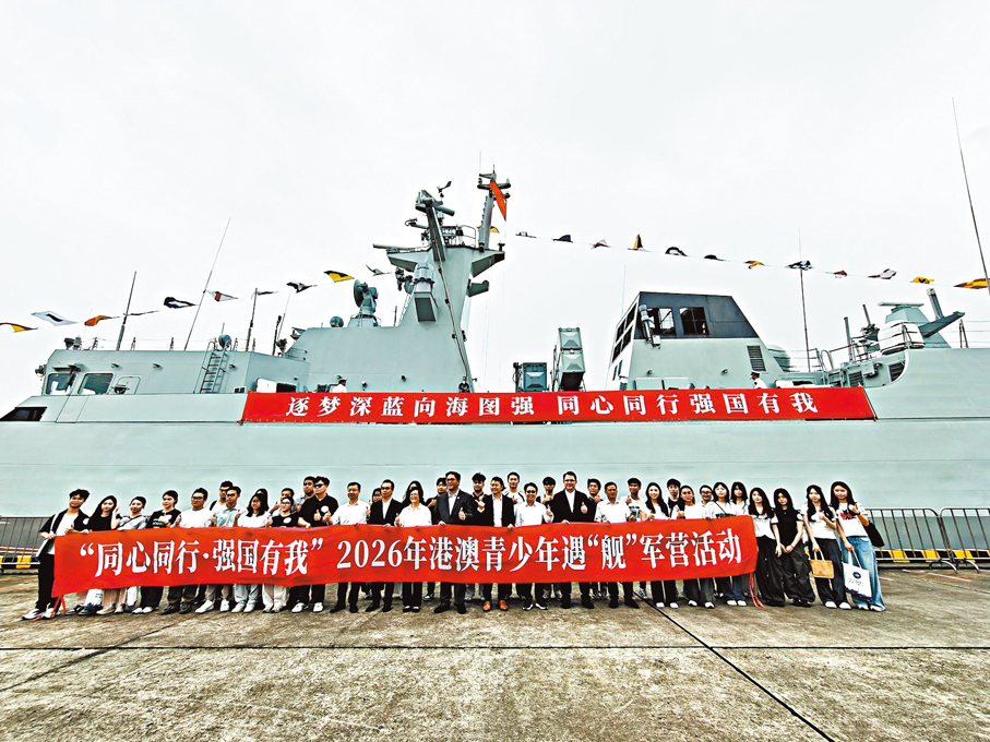 「同心同行·強國有我——2026年港澳青少年遇『艦』軍營」活動由廣東省人民政府港澳事務辦公室、香港特別行政區政府民政及青年事務局、澳門特別行政區政府教育及青年發展局、廣州市人民政府港澳事務辦公室聯合主辦。活動精心設置「深藍征途鑄輝煌—海軍特色文化展示」「戰風鬥浪礪精兵—官兵戰訓風采展演」「同心同行話國防—登艦實地觀摩交流」三大板塊,系統展現人民海軍從無到有、從小到大、從弱到強的壯闊發展歷程,讓港澳青少年「零距離」領略海軍現代化裝備的磅礡氣勢,全方位感受人民海軍的過硬作風與國家日益強大的國防實力,進一步堅定了粵港澳青少年同心同行、共築強國夢想的信念。