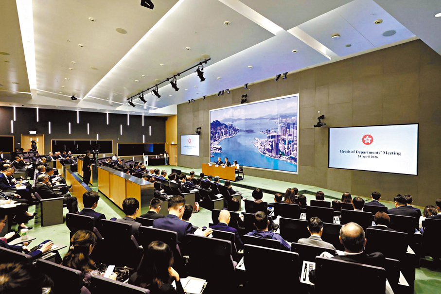 李家超在政府部門首長會議上向各司局長、部門首長及高層官員講述國家「十五五」規劃的重要意義,以及就制定香港五年規劃工作的要求。
