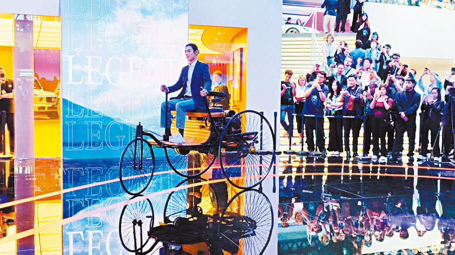 香港文匯報訊(記者 朱燁、郭瀚林 北京報道)2026年正值汽車誕生140周年,梅賽德斯—奔馳在本屆展會上以品牌經典格柵為設計靈感,打造了極具辨識度的專屬展台,並首次集結了12款跨時代的傳奇座駕與珍貴展品,展開一幅跨越百年的創新畫卷。展品中既有1886年開啟人類出行新紀元的「奔馳一號」,也有1938年問世、被譽為車輪上傳世傑作的540K,及1954年驚艷全球、首創鷗翼門設計的「最美奔馳」,還有率先搭載ABS系統的第五代S級轎車等。此外,中國人心中最經典的「大奔」——第七代S級「虎頭奔」也在現場亮相。