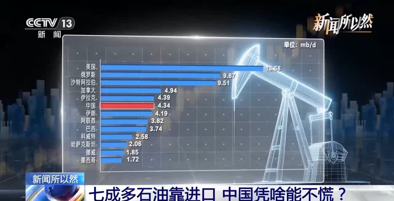 總台記者梳理發現,十多年來儘管中國對能源需求持續上漲,但石油在能源結構中的佔比始終穩定在18%左右,這18%裏還有大約20%是我們自產。