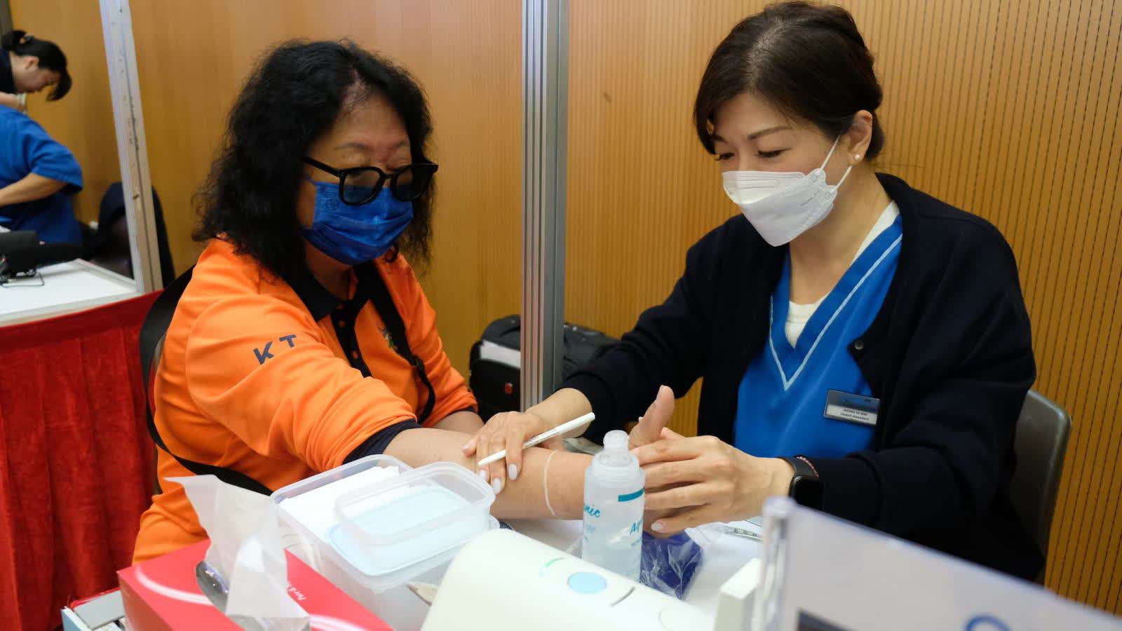 香港文匯報訊(記者 蕭景源)籍慶祝「世界健康日」,觀塘警區耆樂警訊名譽會長會聯同觀塘健康城市督導委員會,今日(25日)在油塘社區會堂聯合主辦名為「世界健康日2026之人人防騙 日日健康 樂活觀塘」康健日,活動內容包括多項健康檢測(前列腺特異抗原、三高乙肝、骨質疏鬆、視網膜、心電圖、糖化血色素、血壓等)、防騙話劇、體重管理的健康講座、中醫義診、肩頸推拿及攤位遊戲等,活動吸引逾400名市民參與,當中以透過AI技術為參與人士初步檢測「老人癡呆」及青光眼的攤位,最受歡迎。