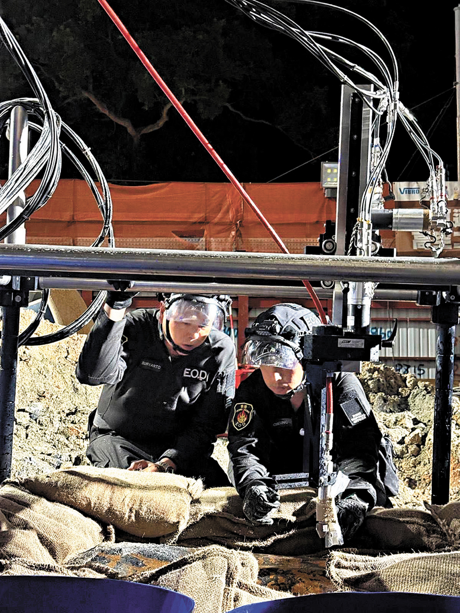 鰂魚涌濱海街一地盤去年9月19日驚現二戰時期美軍1.5米長、重約1,000磅的「ANM65」標準空投炸彈,香港警務處爆炸品處理課經過9個多小時成功拆彈,其間高效疏散18棟商業及住宅大廈約6,000人。爆炸品處理課高級炸彈處理主任(行動部)李展超日前接受香港文匯報記者專訪,詳述這項任務背後藏着多個「第一次」;事實上所有「第一次」也非臨時策劃,而是早已融入日常訓練之中,例如團隊首次出動無人機完成任務,但試驗無人機協助執行任務就超過十年。該炸彈處理任務是團隊2025年最大型炸彈任務之一,雪上加霜的是惡劣天氣、機器故障、疏散人數眾多等三重挑戰下,團隊迎難而上順利完成任務,並獲國際社會認可,內地及外國多個拆彈部門紛紛向香港請教,亦得到市民大眾的理解與支持。