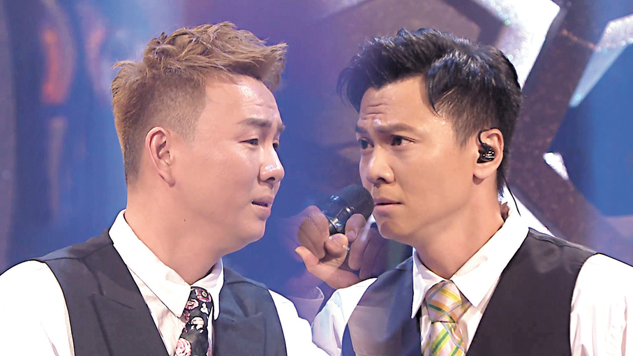 香港文匯報訊(記者 達里)《中年好聲音4》進行到「快慢二重奏」雙人組隊比賽,20強選手根據成績分別揀選一首慢歌和一首快歌合唱,今個回合以懷舊為主題,參賽者以復古風造型亮相,評審們亦花盡心思。肥媽穿鮮黃色恤衫配七彩珠片牛仔褸,張佳添與周國豐則以上世紀八十年代流行「着鞋唔着襪」的吊腳褲裝示人。