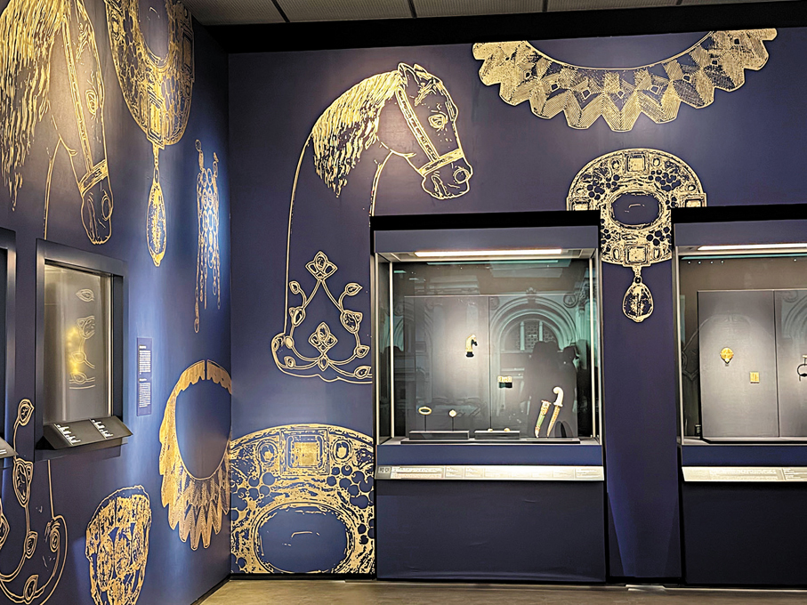 今次香港故宮館特別邀請香港設計師陳幼堅擔任展覽藝術顧問及平面設計藝術指導,根據工藝內容和藝術語境為每個展覽單元打造特別展牆,將「東情西韻」的設計哲學融入展場。其中以「黃金屋」為主題打造的空間尤為醒目,金色馬賽克地面與牆面相互映襯,營造出沉浸式觀展氛圍。