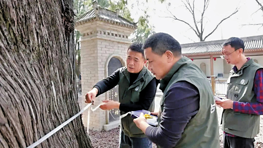 除了大規模植樹,自秦漢以來,歷朝歷代也都對黃帝陵古柏群進行了較好的保護。北宋嘉祐六年(公元1061年),橋山有了最早的專職護林員。彼時,宋仁宗不僅命坊州(今黃陵縣)職官派專人維護橋山松柏,整舊栽新,當年還在橋山種植柏樹1,415棵。為了加大保護力度,還免除了當地三戶人家的一切差役糧稅,特令他們專職守林。新中國成立後,黃帝陵古柏群更是得到全方位的精心保護,國家林業局、陝西省先後制定《黃帝陵古柏群綜合保護總體規劃》《古柏保護方案》,如今當地更是成立了一支超過70人的專職管護隊伍「守護」這些古樹。