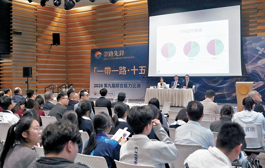 由帶路先鋒主辦,香港專業及資深行政人員協會、新界青年聯會協辦的第九屆「一帶一路·與我何干」綜合能力比賽昨日在恒生大學舉行。今年適逢活動十周年,亦是「十五五」規劃開局之年,大會特別新增「十五五·與我何干」比賽主題,並同步舉行《圖解十五五》新書發布儀式及《香港青年「十五五」認知與意向調查報告》發布會,旨在引導青年由認知、思考到實踐,全面對接國家發展大局。