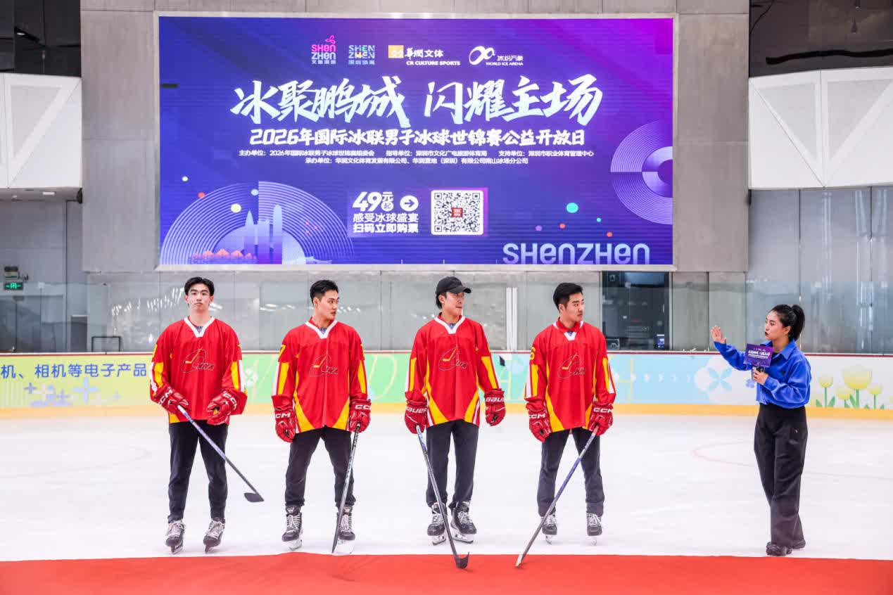 (香港文匯網記者李薇)2026年國際冰聯男子冰球世錦賽公益開放日活動25日在深圳南山萬象天地舉辦。本次活動是4月29日即將開賽的2026年國際冰聯男子冰球世錦賽的重要預熱活動,現場吸引超千名市民參與,70餘位青少年冰球愛好者踴躍加入,其中超三分之一來自香港。中國男冰隊員張嘉祺、閆俊丞、國家寧、陳世楓作為特邀嘉賓出席活動。