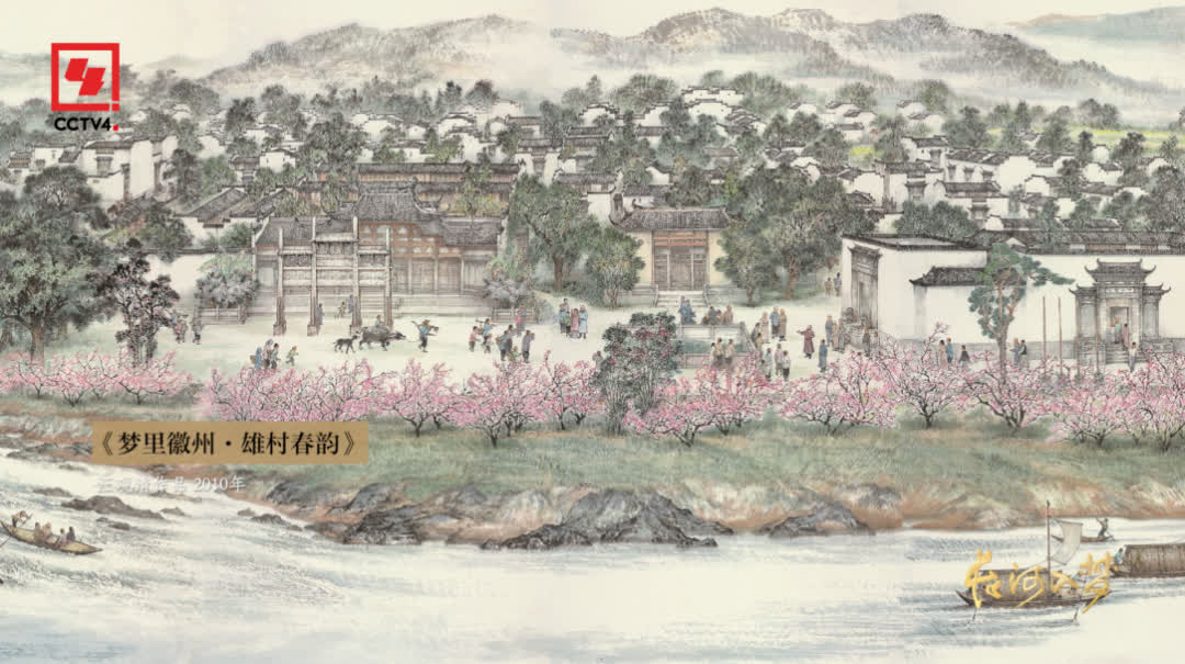 回到中國後,汪觀清歷時五年繪就60米長卷《夢裏徽州》,2010年亮相上海世博會。這幅長卷畫出了十多個徽州村莊,描繪了七百多個人物,囊括了近百個風俗故事,白牆黛瓦、新安江水、人間煙火盡收筆下,訴說了一個遊子無盡的故鄉思念。這幅長卷被人們譽為徽州版的《清明上河圖》。