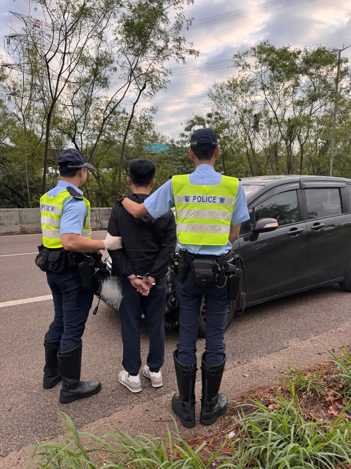 行動中,人員共拘捕兩名31歲本地男子。其中一名男子涉嫌「危險駕駛」被捕,現已獲准保釋候查,並須於五月下旬向警方報到。另一名本地男子涉嫌「未獲授權取用車輛」、「販運危險藥物」、「無牌駕駛」及「駕駛時沒有第三者保險」被捕,現正被扣留調查。