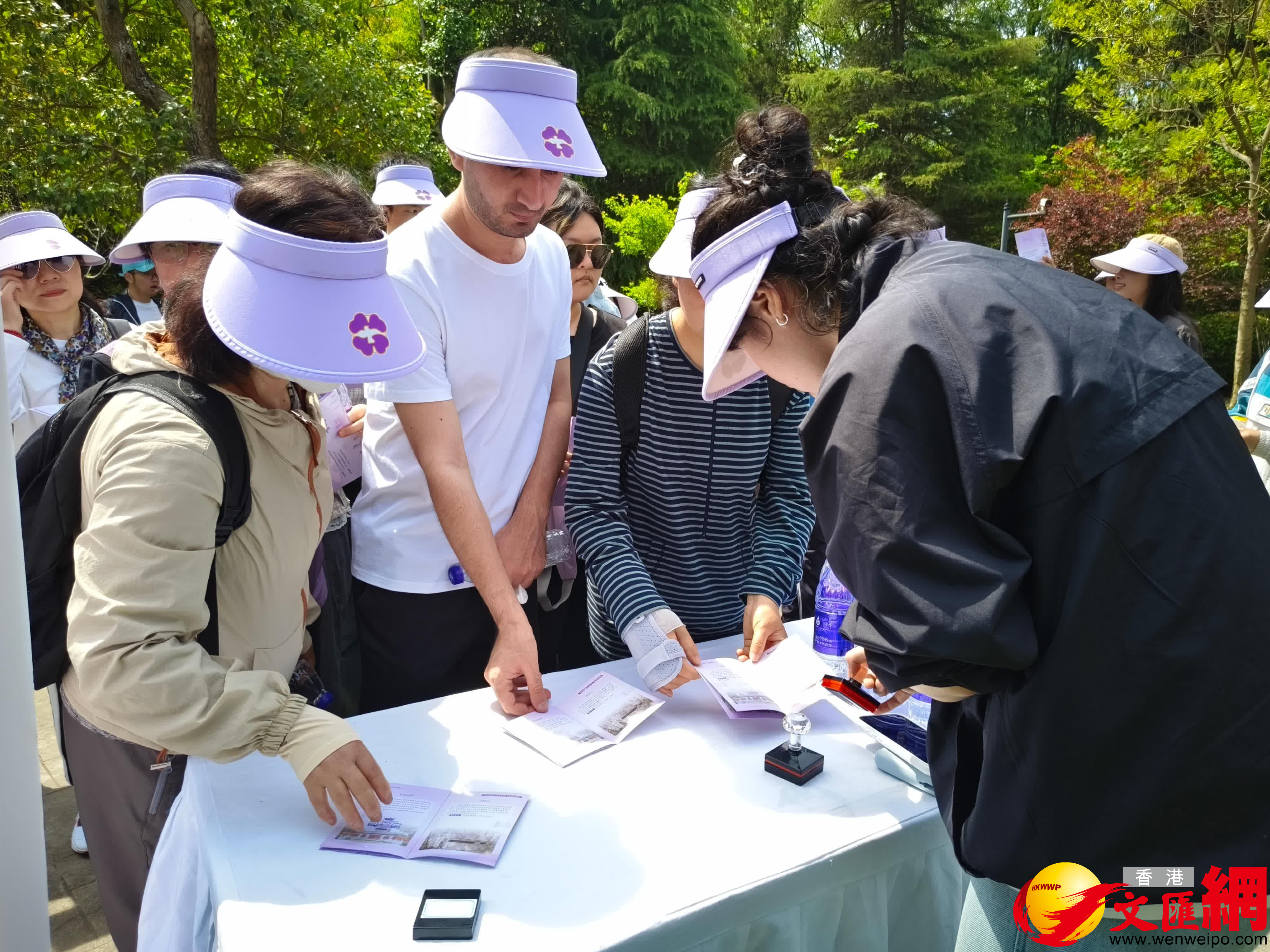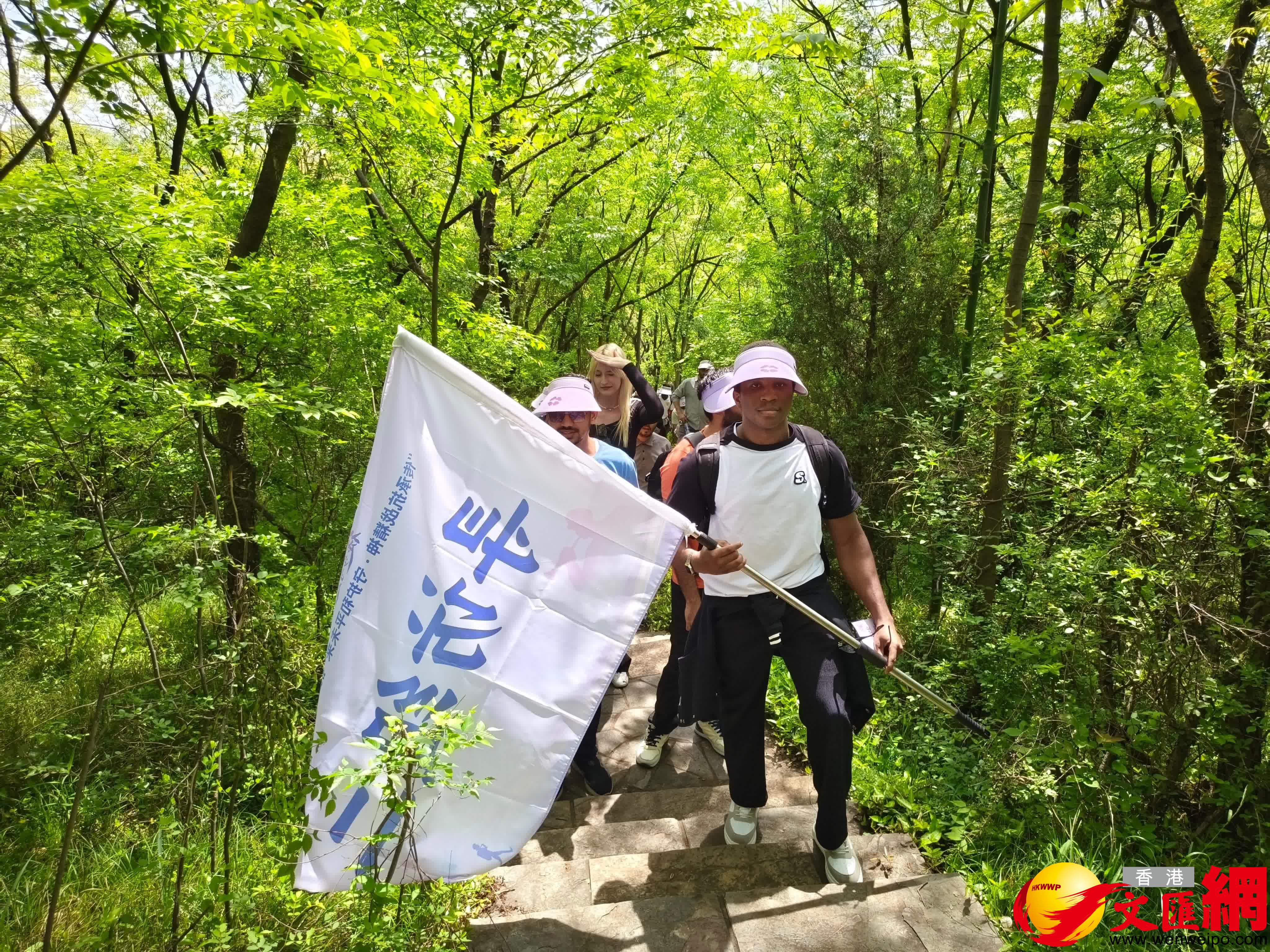 參加活動的中外人士包括南京青少年學生、親子家庭和志願者代表,以及來自多個國家的留學生代表等。他們從鍾山體育公園出發,徒步近10公里,先後尋訪侵華日軍南京大屠殺遇難同胞東郊叢葬地和靈響亭、行健亭、陵園郵局、邵家山碉堡群等抗戰遺蹟,以走讀為載體,深入了解鍾山周邊抗戰遺蹟的歷史背景與時代意義。