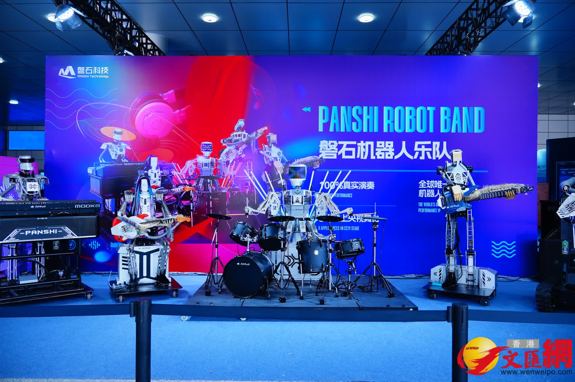 在25日舉行的媒體開放日上,記者搶先探館。還未走進展館,一樓大廳裏磐石機器人樂隊首先吸引了大家的目光。五名身高均超過1.8米的機器人樂手現場演奏起動聽的音樂。據了解,該樂隊融合機器學習算法與音樂創作系統,配備仿生機械演奏裝置,是國內首個文旅融合的機器人演藝IP。