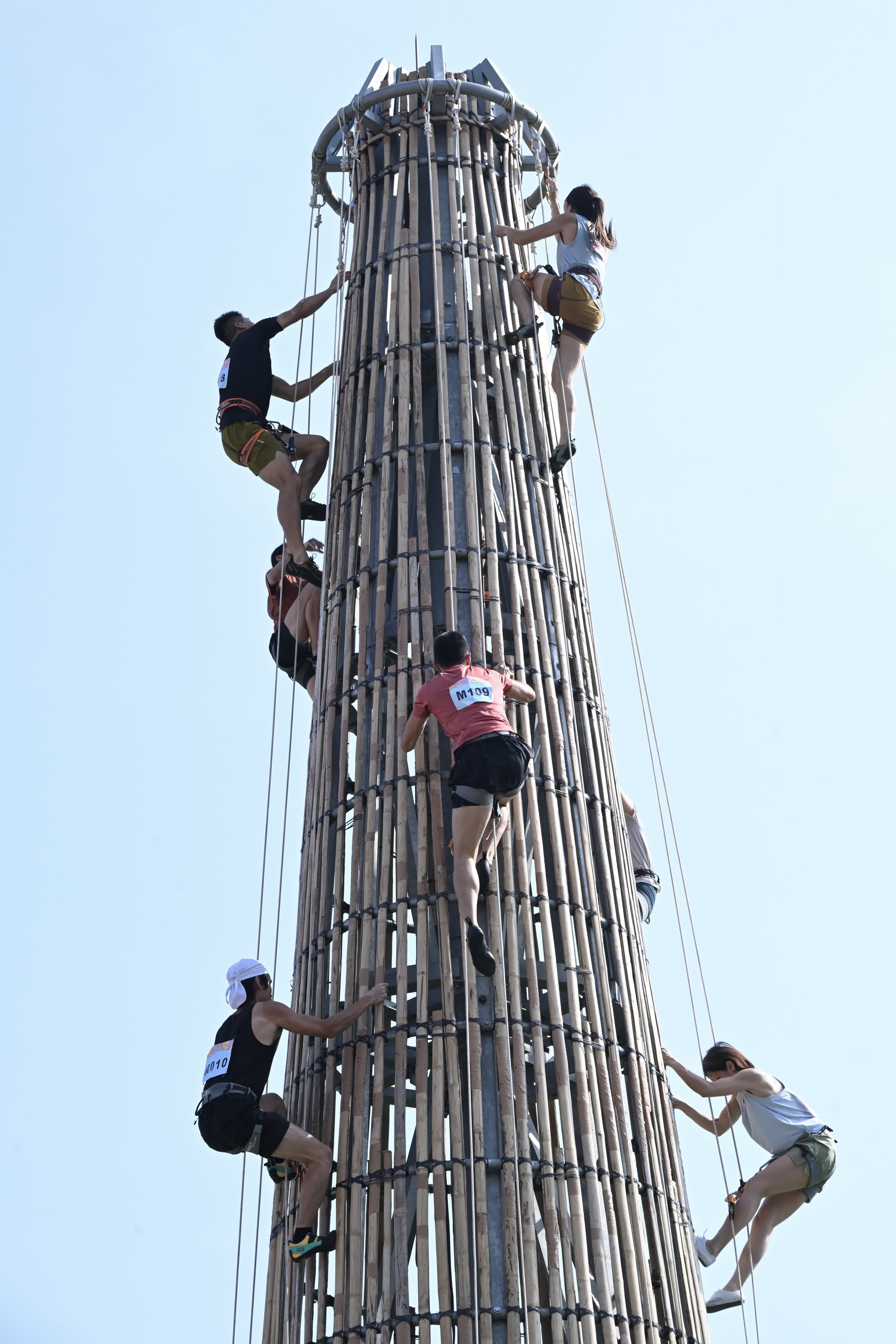 香港文匯報訊(記者 蕭景源)87名「搶包山比賽」的參賽者今日(26日)在長洲北帝廟遊樂場足球場參加選拔賽,爭取以最短時間攀登約14米高的包山架。經過一番激烈角逐後,12名健兒成功躋身5月24日晚「搶包山決賽」,當中入圍決賽的男子組有9人及女子組有3人,包括去年的「包山王」郭嘉明及去年的「包山后」龔子珊。