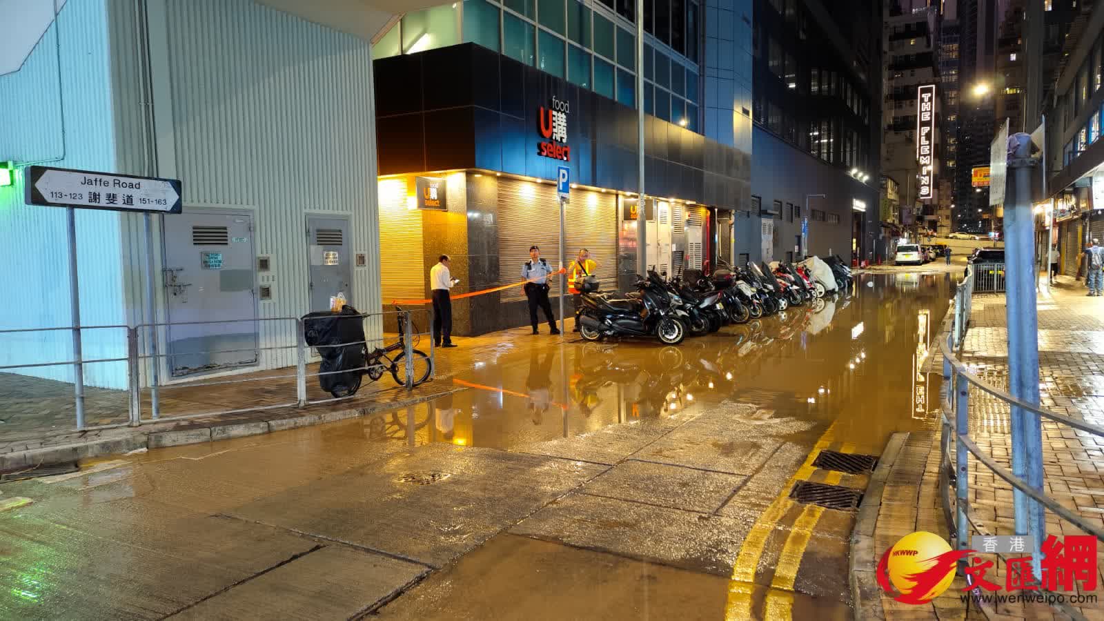 香港文匯報訊(記者 蕭景源)今日(26日)晚上約9時,警方接報指灣仔謝斐道近柯布連道有水管爆裂。由網上片段可見,現場謝斐道介乎菲林明道至柯布連道之間一段路面被湧出的黃泥水淹浸,路邊電單車泊位有近20部電單車被泥水圍困,水深一度約半呎,附近大廈停車場亦放置沙包和水閘以防泥水湧入。