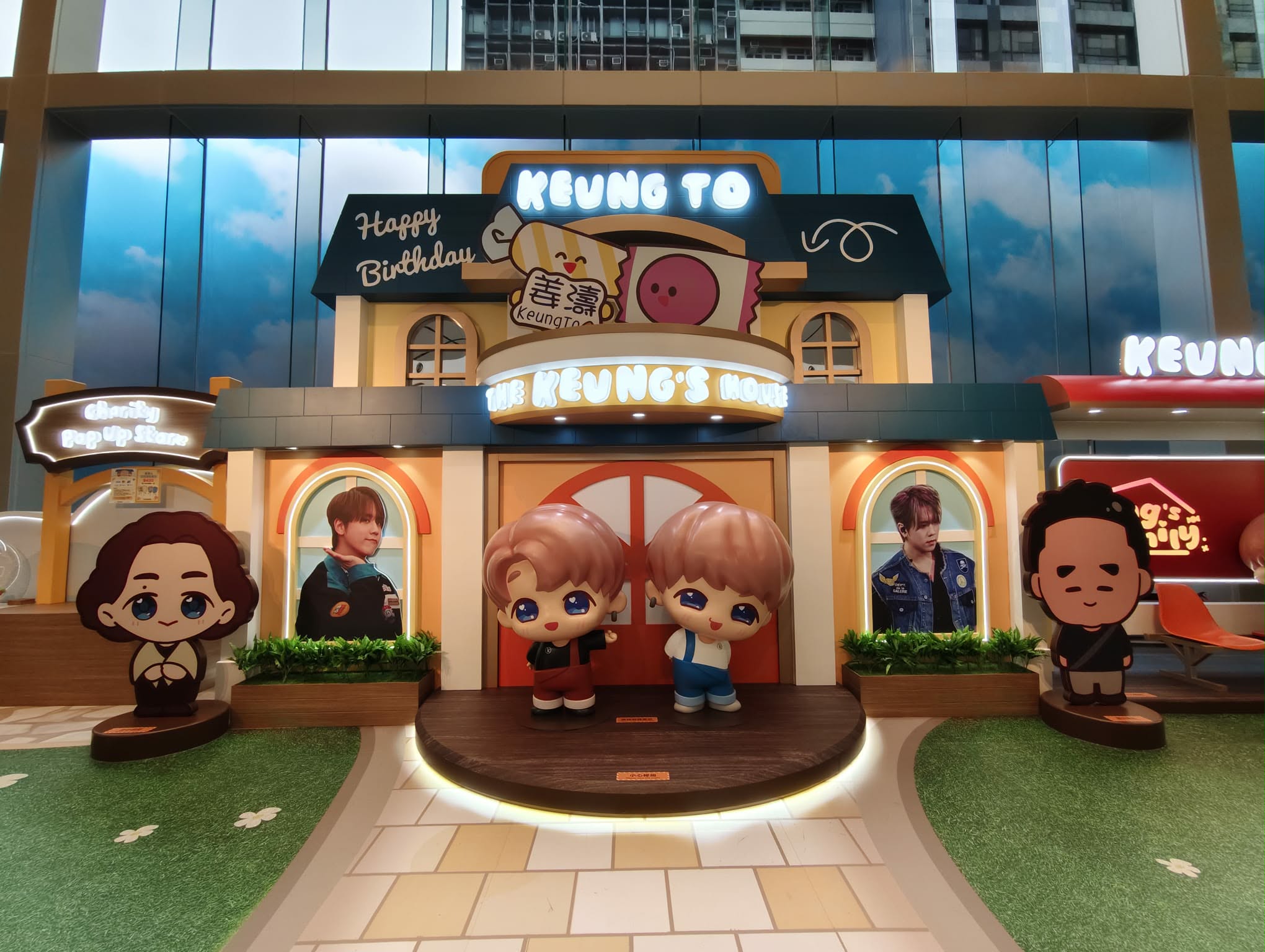 尖沙咀The ONE的「The Keung’s Family」延續廣受歡迎動畫「The Mini Keung Show」之可愛風格,於中庭呈獻四大幸福的打卡場景,由全新角色「姜爸」及「姜媽」齊齊迎接姜濤生日;從後援會專屬的招牌應援電車及車站,到緊貼姜濤最新運動嗜好匹克球角落,每個細節均喚起集體回憶,引起姜糖共鳴。現場更特設「The Keung's House Charity Pop Up Store」,售賣會場限定匹克球拍套裝,與偶像一同解鎖新技能。
