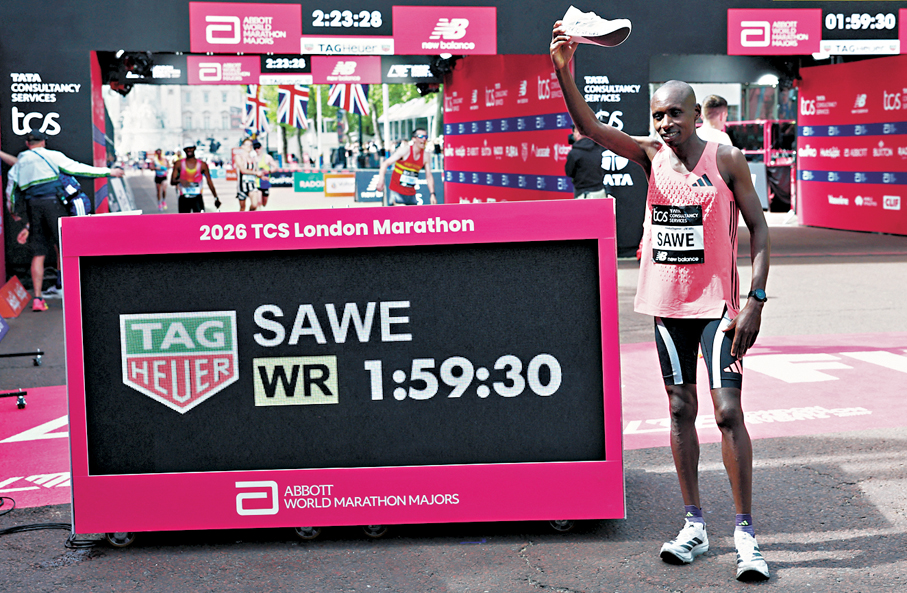 香港文匯報訊(記者 楊浩然)昨日上演的倫敦馬拉松寫下人類競技體育歷史,來自肯尼亞的薩維以1小時59分30秒的成績打破男子馬拉松世界紀錄,成為兩小時內完賽的第一人。