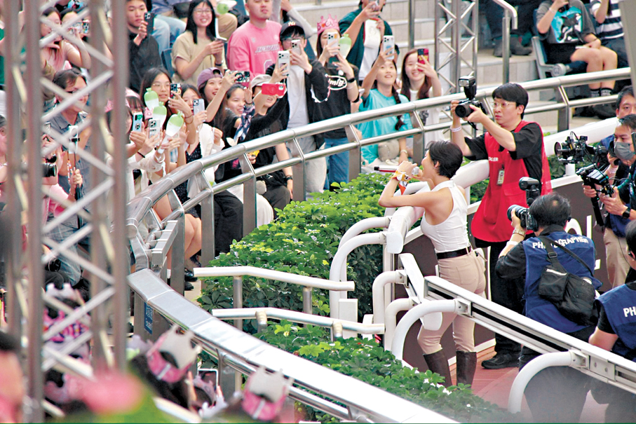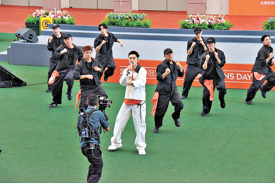 韓團MAMAMOO成員華莎聯同香港歌手周柏豪和許廷鏗昨日為沙田馬場賽馬日擔任表演嘉賓,每人均唱3首歌為馬迷預熱,吸引不少他們各自的粉絲入場支持。周柏豪首次於沙田馬場登台,笑言上次到訪馬場已是14年前拍攝新年宣傳。他回顧舊照感嘆歲月飛逝,他都認不到自己,如今他已成家立室更踏實,但仍覺自己像個大孩子。●香港文匯報記者 達里