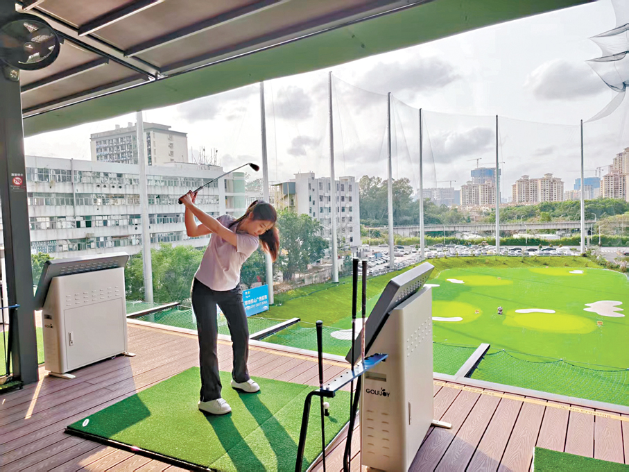 高時運動公園運營經理朱雨欣介紹,項目於2025年12月試營運,既有單獨的高爾夫包間,也有2個天台項目。天台總面積約2,000平方米,擁有全國最高的公眾高爾夫練習位,同時搭配有匹克球、網球等場地。