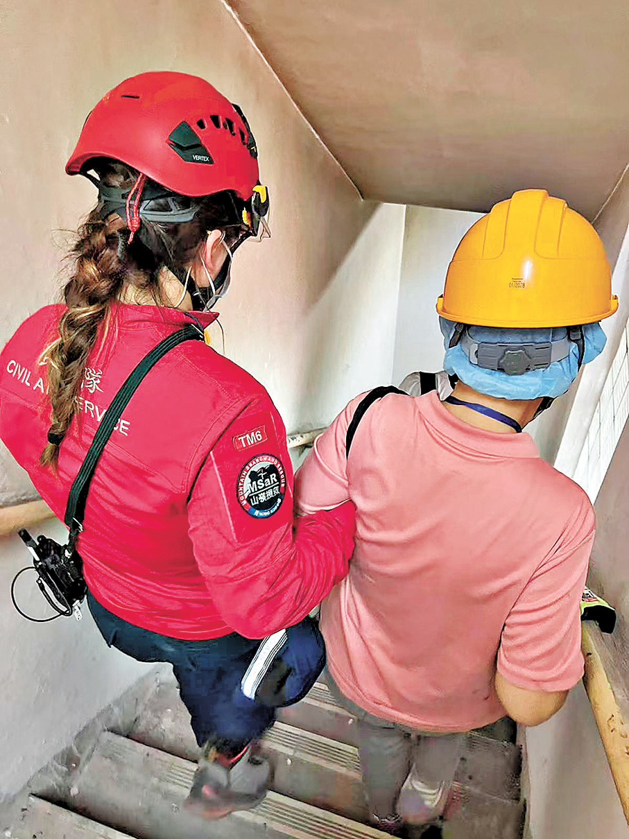 大埔宏福苑獲安排上樓居民在警務人員、民眾安全服務隊和專隊的社工、臨床心理學家等協助下,重返住所找回珍貴物件。隨着上樓安排持續推進,民安隊隊員在工作過程中見證眾多溫暖瞬間。任職於醫院的民安隊少年團E中隊22分隊指揮官謝迦朗向院方請假參與行動。