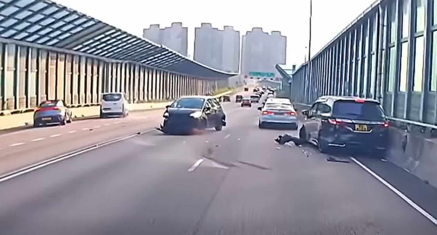 香港文匯報訊(記者 蕭景源)今日(27日)早上7時許,吐露港公路近香港教師會李興貴中學對開發生4車連環相撞驚險交通意外,分涉一輛客貨車及3輛私家車,最少釀成2人受傷,相撞一刻由其他駕駛者「車cam」拍攝。
