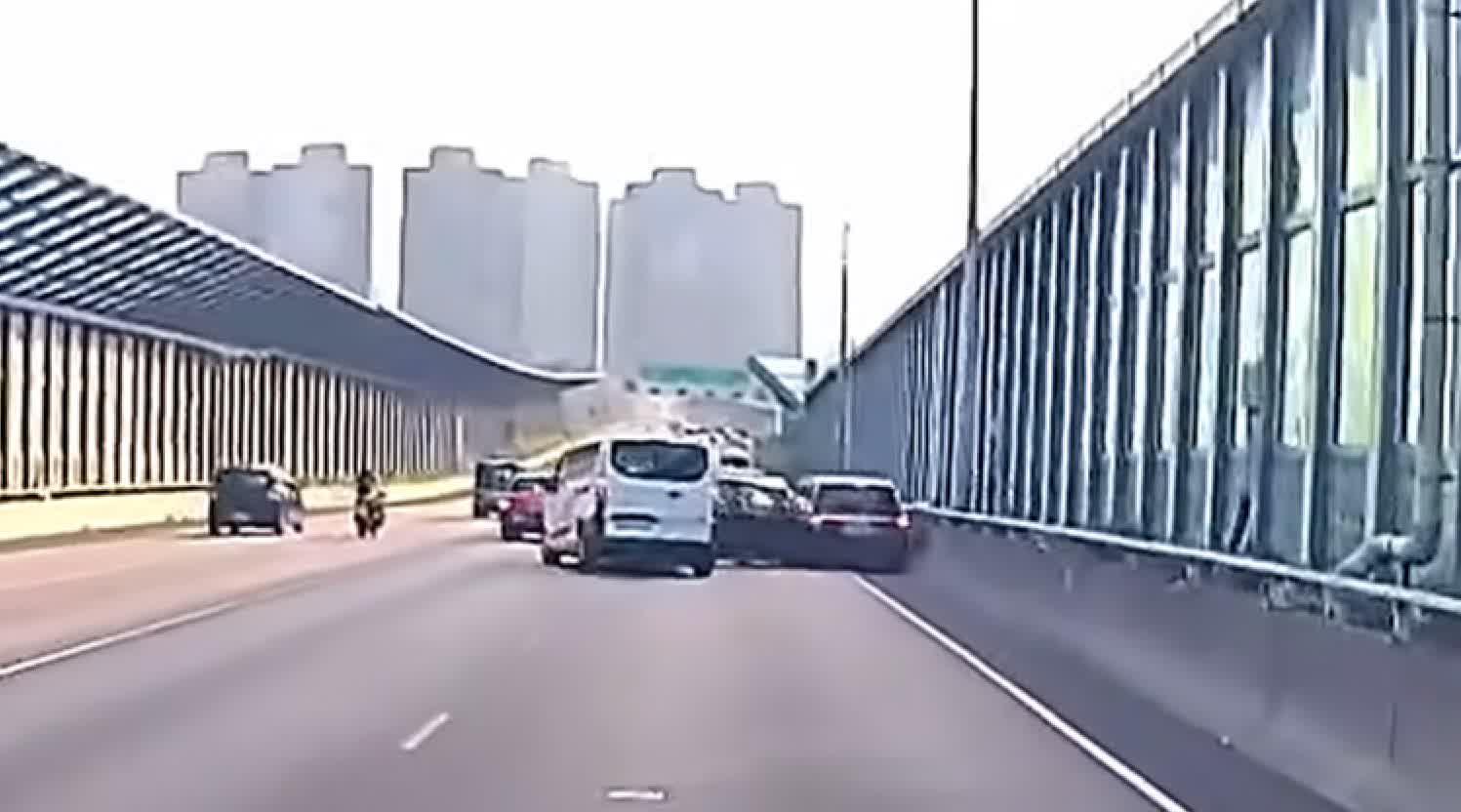 根據網上「車cam」片段顯示,有車輛沿快線駛至事發地點時疑因應交通情況收慢,但尾隨駛至車輛收掣不及相繼撞上,其間一輛較後駛至的白色客貨車,司機嘗試扭左閃避不果,先撞到其中一車再橫越3條行車線至路肩停下,車輛零件散落一地。