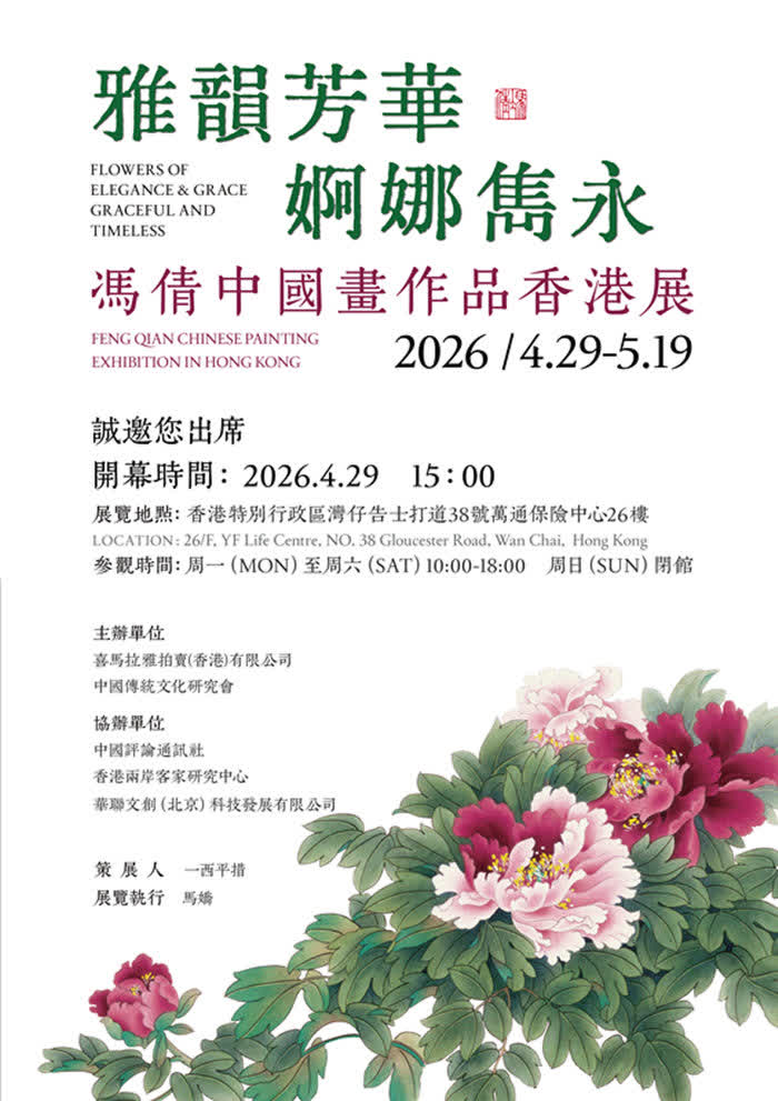 另外,多幅山水、花鳥畫作也將在香港展中亮相,馮倩說,期待能在香港山水花鳥遇知音。