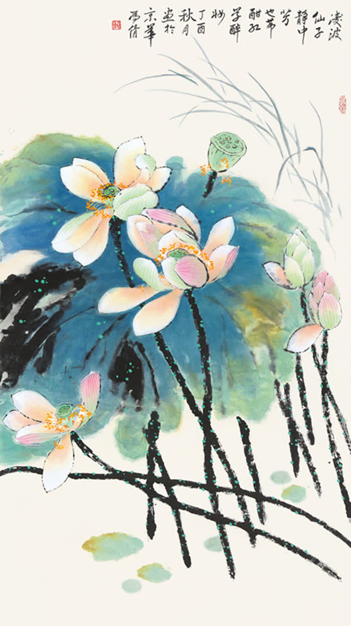 如果說《桃之夭夭》沿用的是深厚的國畫筆觸,那另一幅《凌波仙子》則在理念上走向了重新熔鑄。