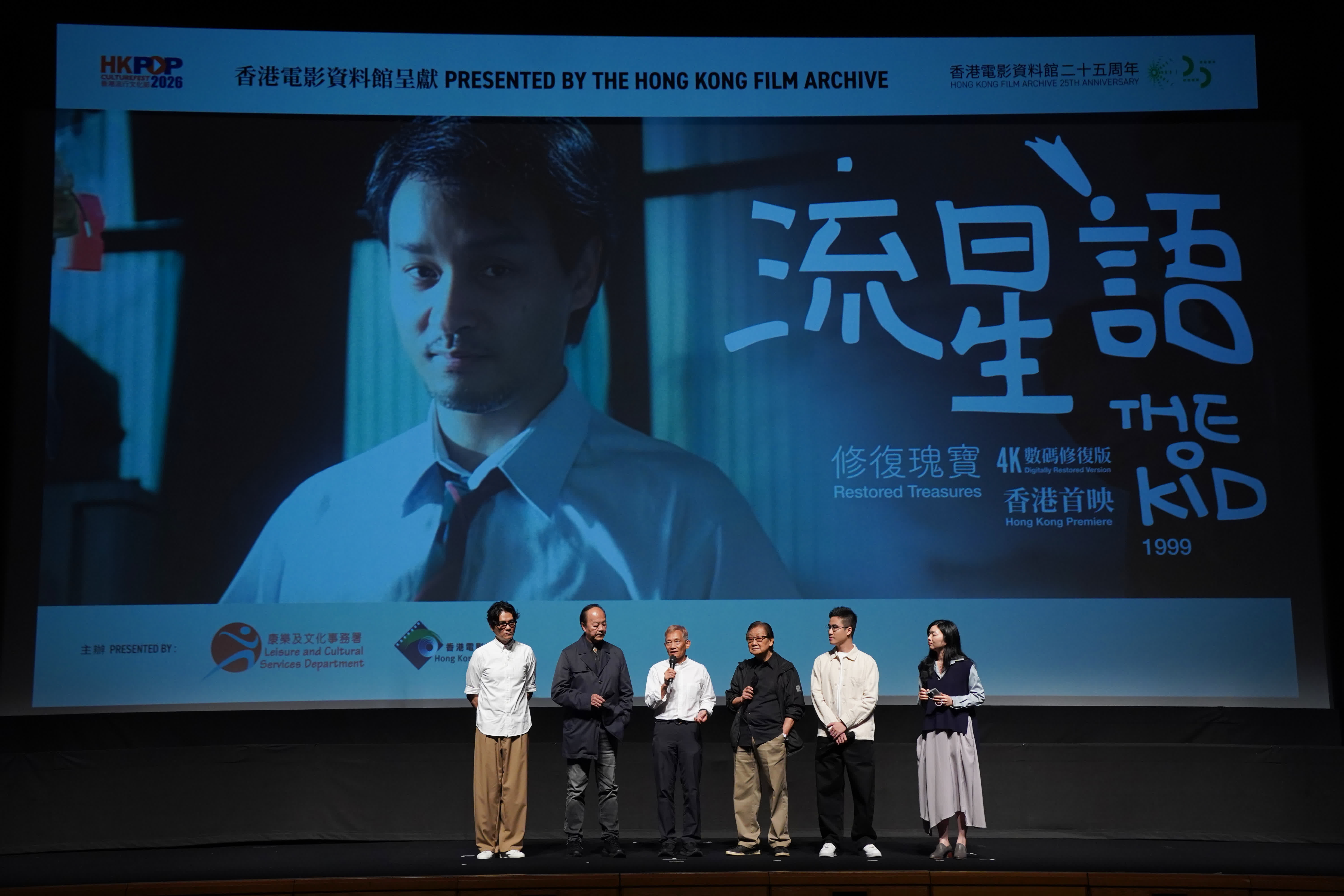 (大公文匯全媒體報道)今年是張國榮(Leslie)誕辰70周年,康文署轄下的香港電影資料館特別推出「修復瑰寶——《流星語》(1999)4K數碼修復版」香港首映,作為資料館25周年誌慶及「香港流行文化節2026」的重點節目。放映於昨(26日)晚在香港文化中心舉行,導演張之亮、另一「創意聯盟」發起人張同祖,以及演員狄龍、林家棟、當年飾演「明仔」的葉靖嵐一同出席,並在映前分享難忘回憶。