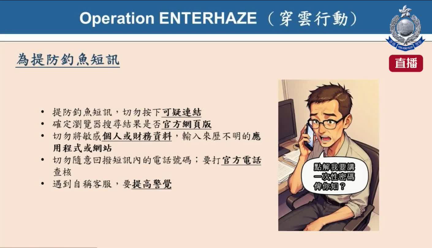 港島總區科技及財富罪案組督察高樂陶提醒,騙徒手法層出不窮,最近除常見假冒官員和投資騙案外,騙徒又重施故技,假冒銀行、電訊公司、政府機構或知名企業發送欺詐短訊(釣魚短訊詐騙),誘導受害者點擊惡意連結或提供個人資料,最終導致損失金錢甚至個人資料被盜用。