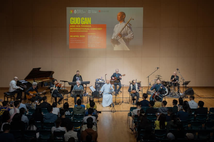 香港科技大學(科大)於昨天圓滿舉行「果敢與他的朋友們」國際音樂會。此次音樂會由科大人文社會科學學院主辦,香港內地經貿協會協辦。作為首位獲頒法國最高榮譽「藝術與文學騎士勛章」的中國民族音樂家、國際二胡大師果敢繼三年前在科大演出後,這次與九位同樣享譽國際的音樂家同場演出,他們分别來自法國、比利時、瑞士、蒙古、突尼斯等多個國家。