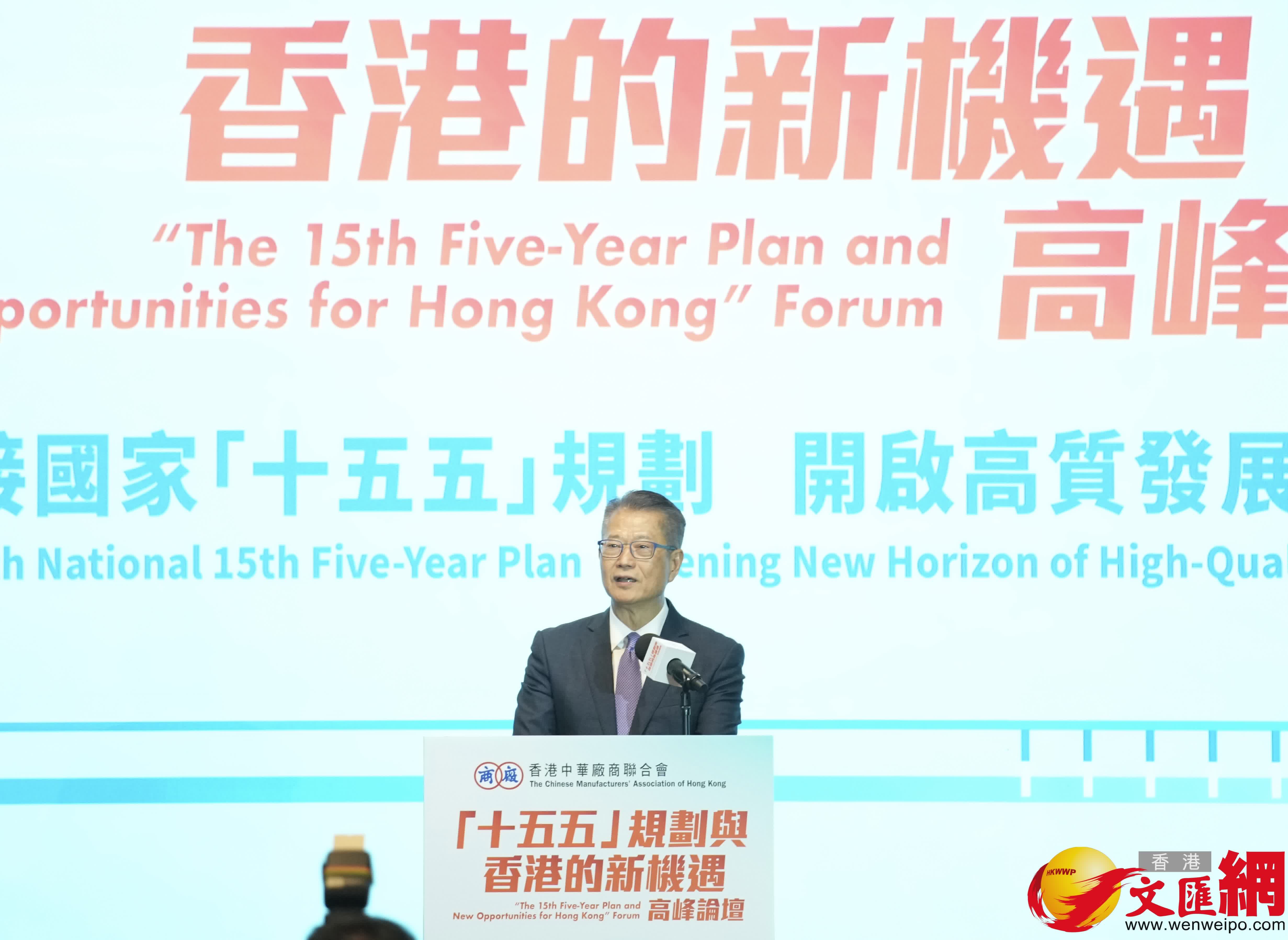 財政司司長陳茂波致詞時表示,國家「十五五」規劃已揭開序幕,香港正站在另一個關鍵起點,如何找準定位和發展方向,是面向未來的關鍵問題。特區政府各政策局已成立香港五年規劃編制小組,正全速推進工作,目標今年內完成。
